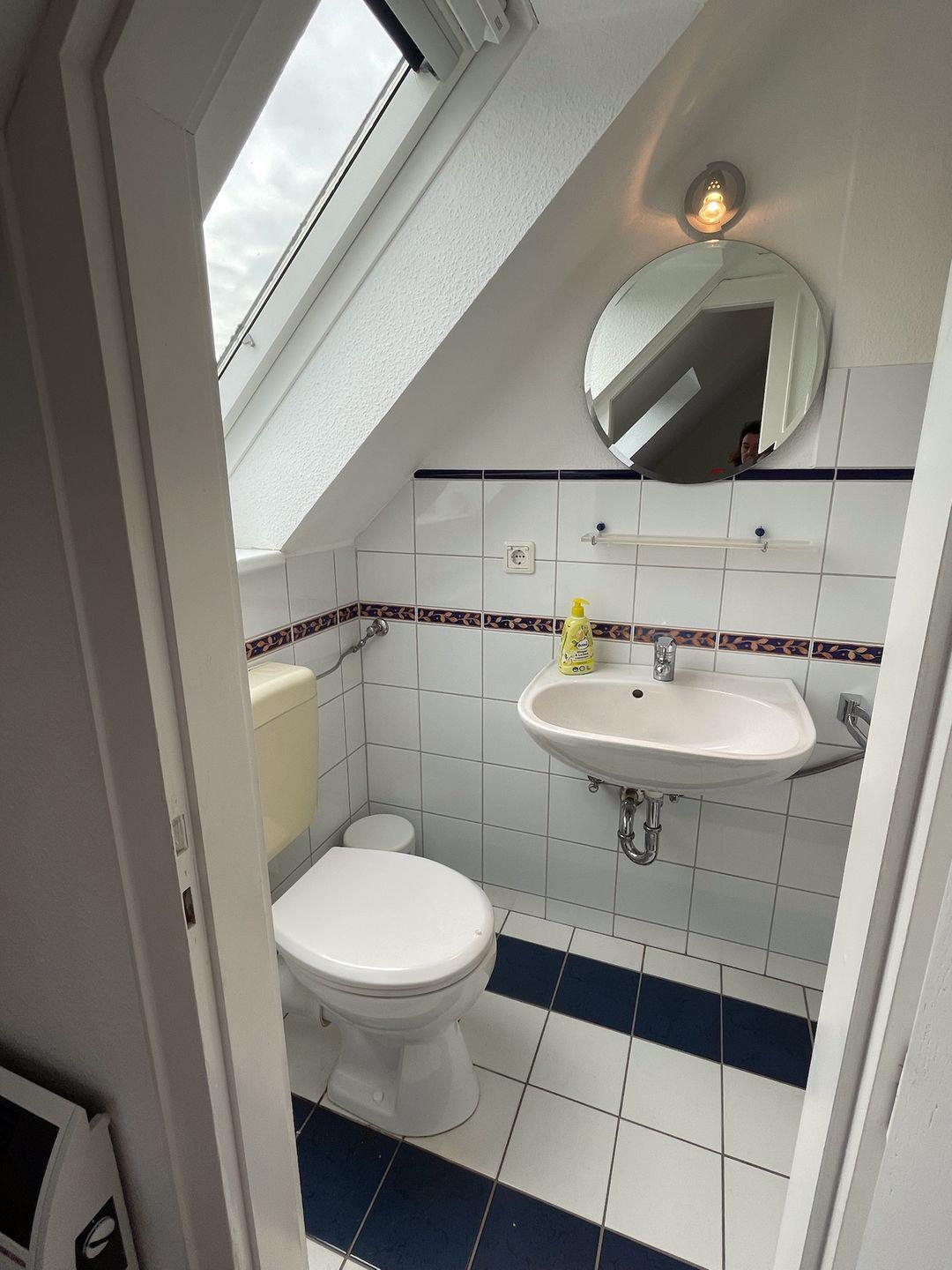 Das Schlafzimmer ist gut ausgestattet und ermöglicht eine erholsame Nachtruhe. Hier erwartet Sie ein komfortables Bett, das für eine erholsame Nachtruhe sorgt. Vom Schlafzimmer aus haben Sie Zugang zu einem modernen Badezimmer, das mit einer Dusche, einem WC und einem Waschbecken ausgestattet ist.
