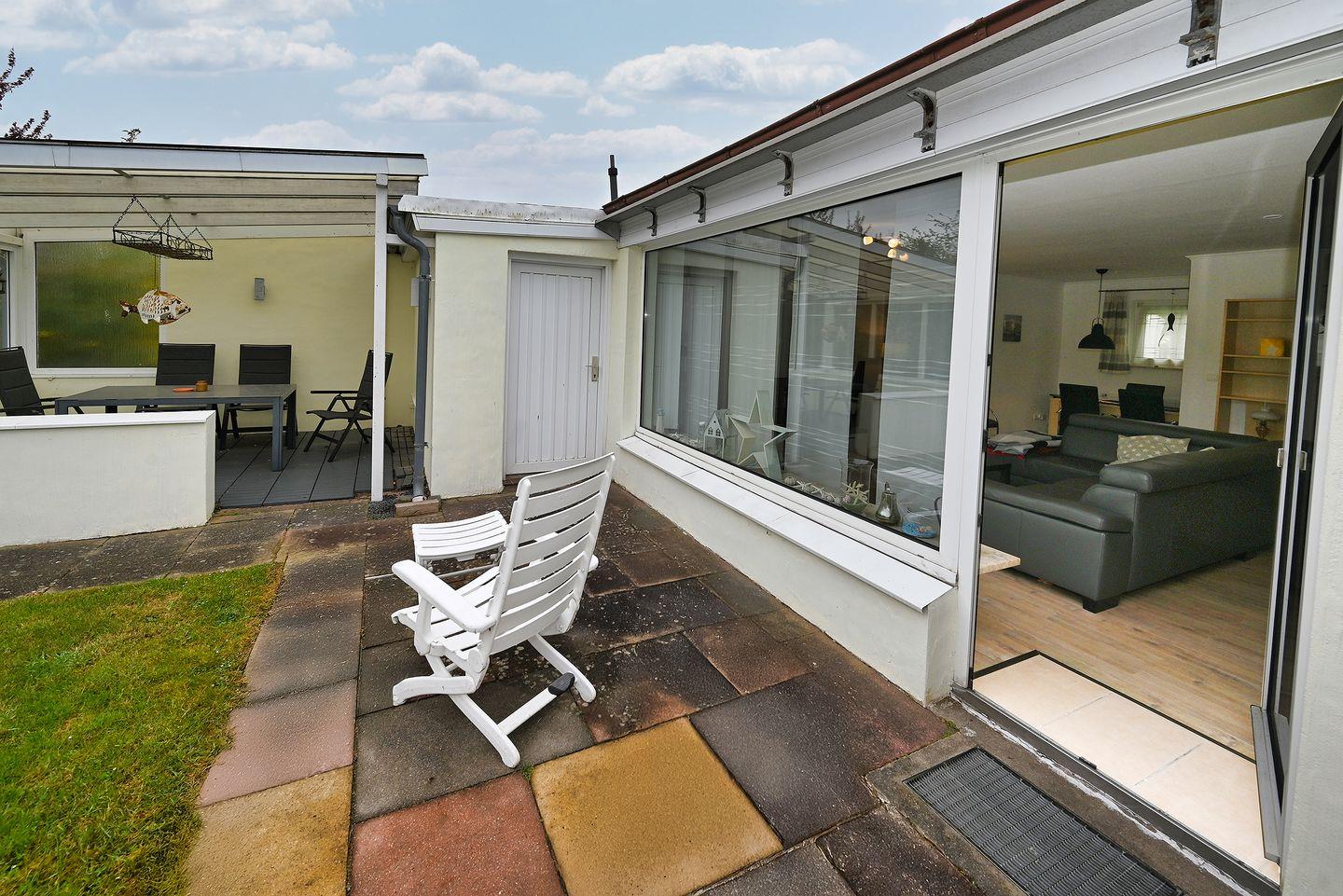 Genießen Sie entspannte Tage im großzügigen Garten mit überdachter Terrasse, die zu jeder Jahreszeit zum Verweilen einlädt - ob beim Frühstück an der frischen Nordseeluft oder bei einem Glas Wein am Abend.