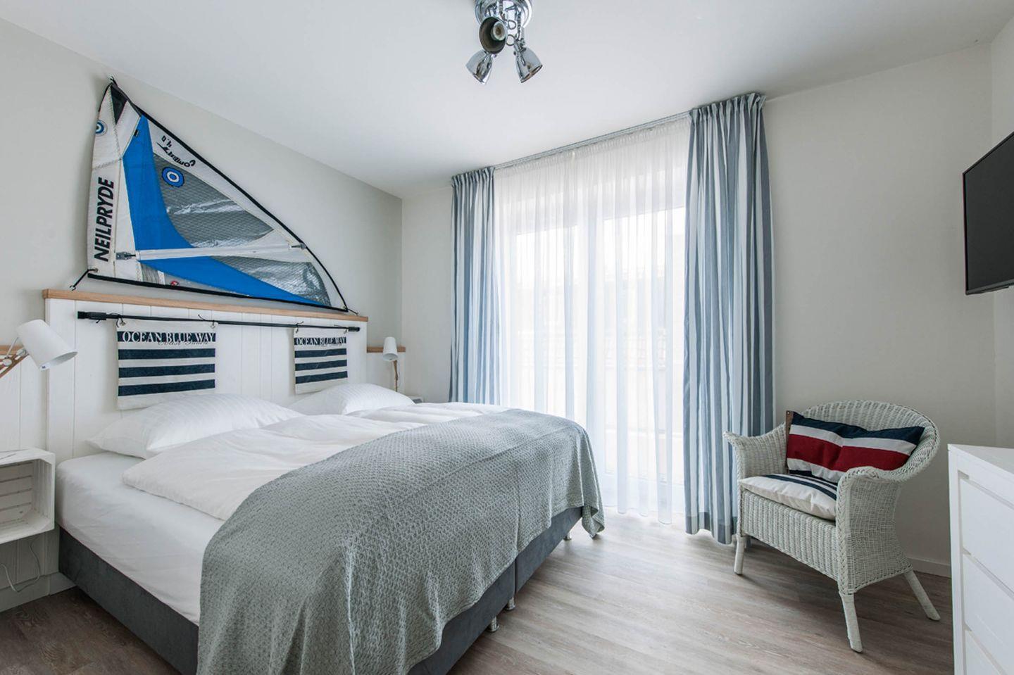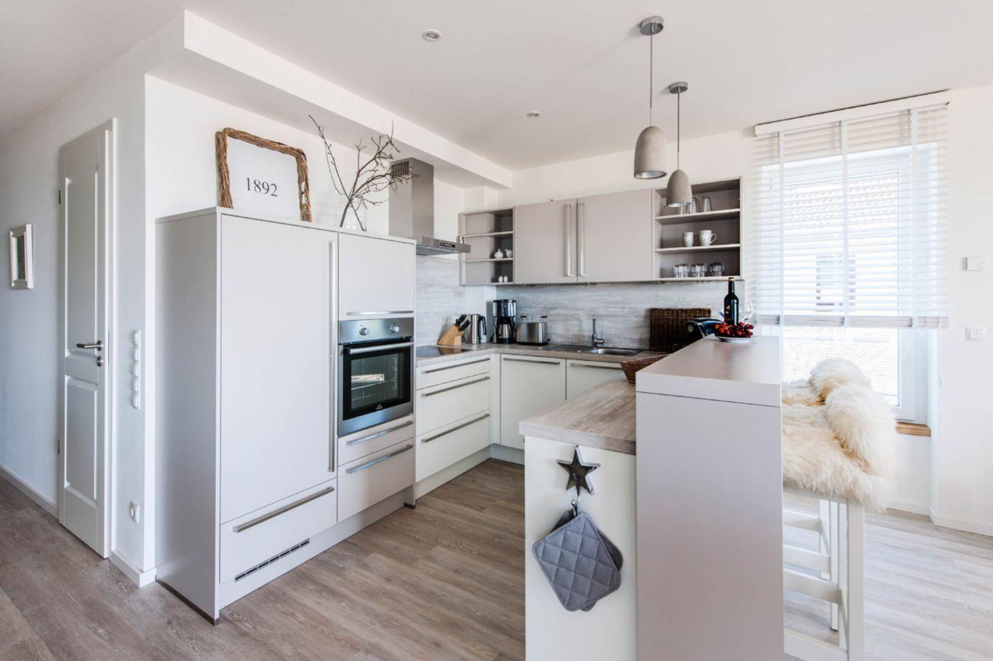 Die Ferienwohnung 3.1 ist eine mit viel Liebe eingerichtete und gemütliche 3-Raum-Wohnung mit einem 20 m² großen Balkon. Die Küchenzeile und der Essbereich sind direkt im Wohnbereich integriert. Die beiden Bäder verfügen über ebenerdige Duschen, Handtuchtrockner und Haar-Föhn. In einem der Bäder befindet sich eine Sauna. Vom Wohnbereich gelangen Sie direkt auf den Balkon.
