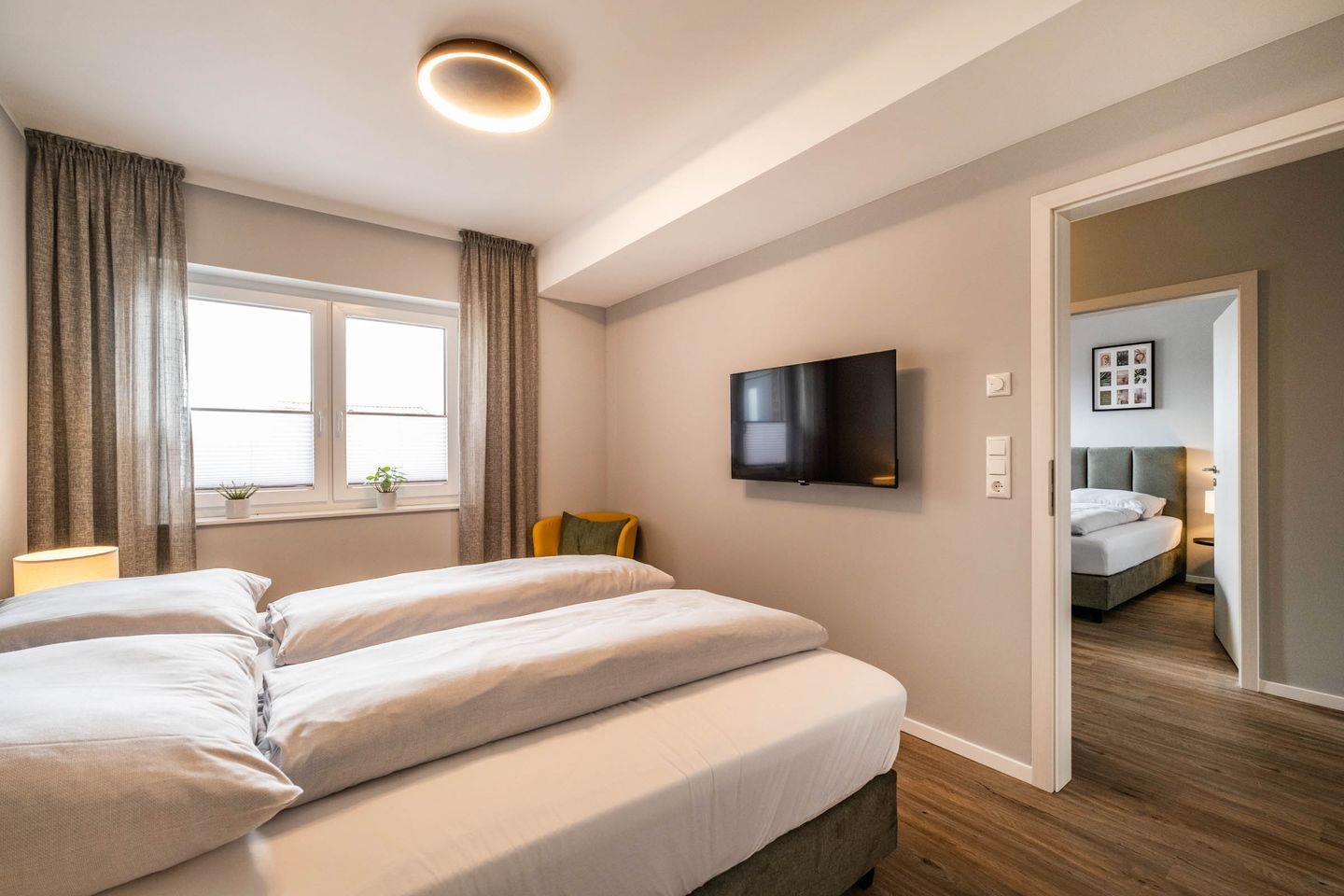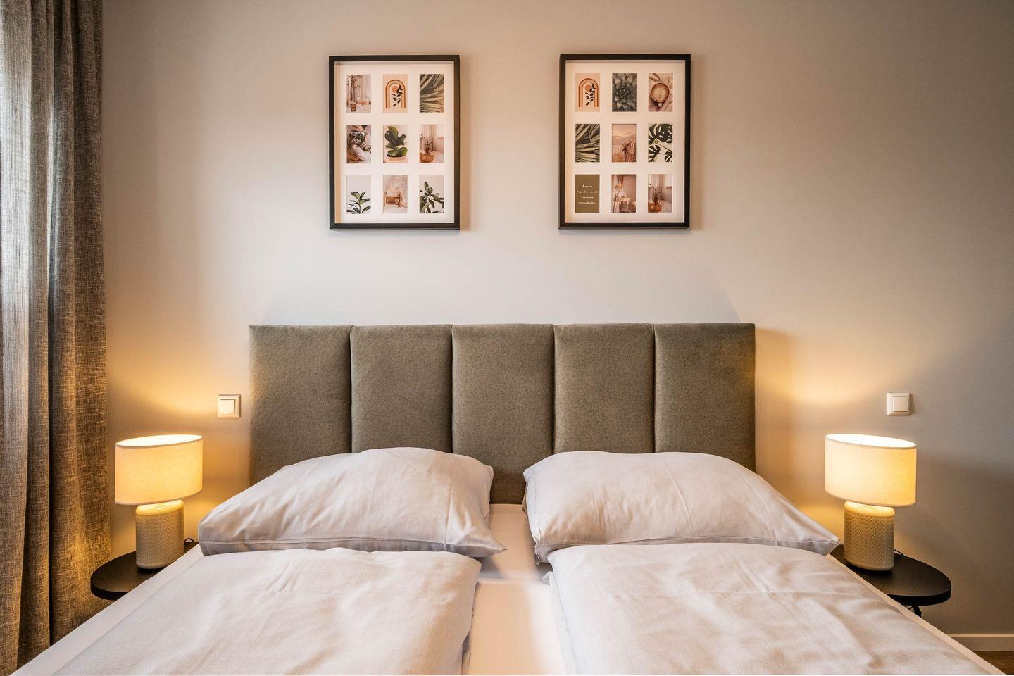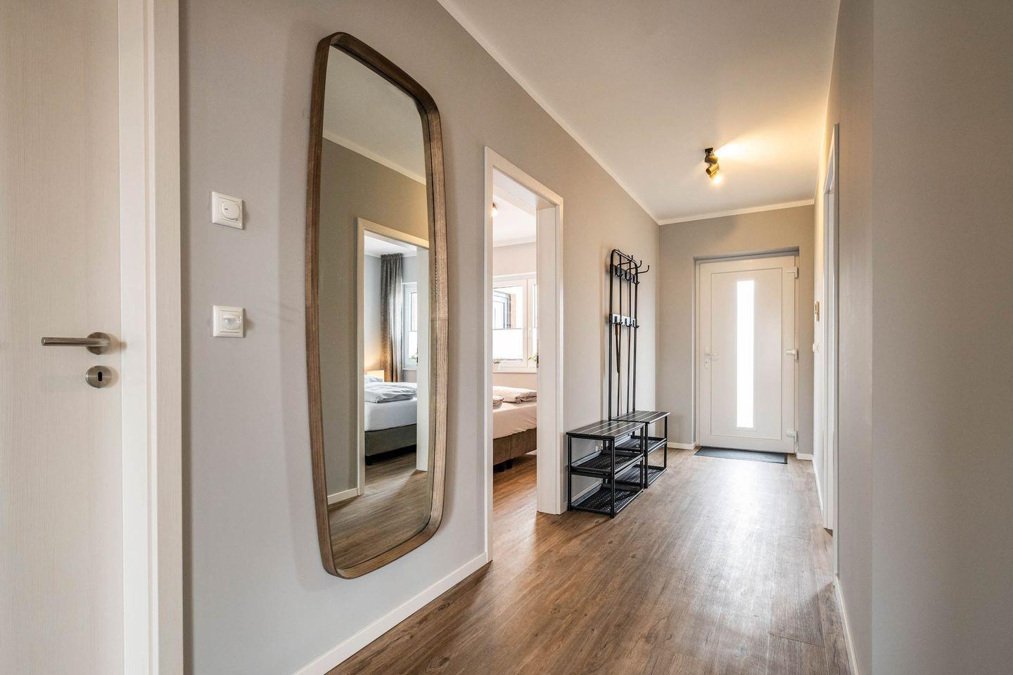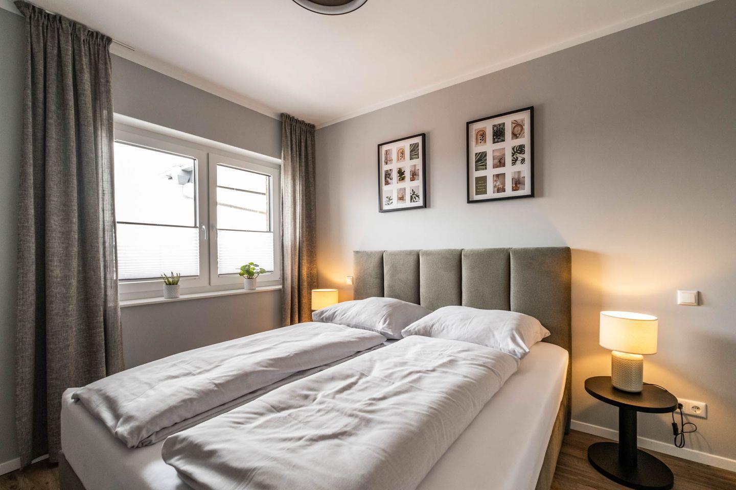 Bei der Ausstattung des Penthouse Apartments wurde an alles gedacht. In zwei stilvoll eingerichteten Schlafzimmern mit hochwertigem Vinylboden finden Sie ruhigen Schlaf und erholsame Nächte. Das großzügige Wohnzimmer verfügt über eine gemütliche Sofaecke und einen Essbereich, ideal für zusammen verbrachte Mahlzeiten. Die offene Küche ist mit modernen Geräten wie einem Ceranherd, einem Backofen, einer Mikrowelle und einer Spülmaschine ausgestattet. Auch Geschirr und Besteck, sowie Küchenutensilien sind in ausreichender Zahl vorhanden, damit Sie sich wie zu Hause fühlen können. WLAN ist im gesamten Apartment kostenfrei verfügbar, sodass Sie auch während Ihres Urlaubs die Verbindung zur Außenwelt aufrechterhalten können.
