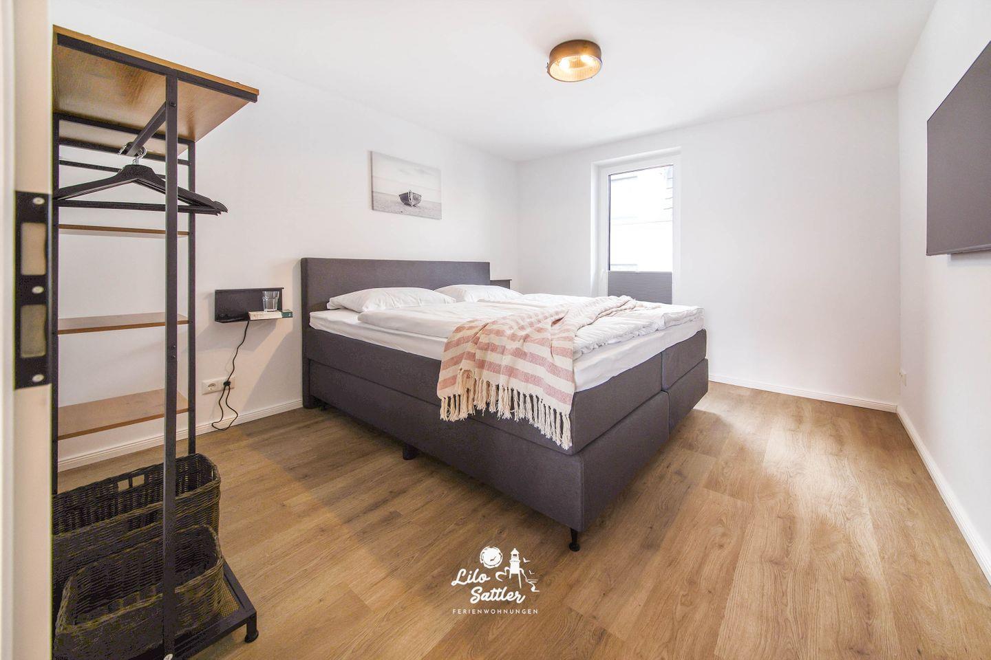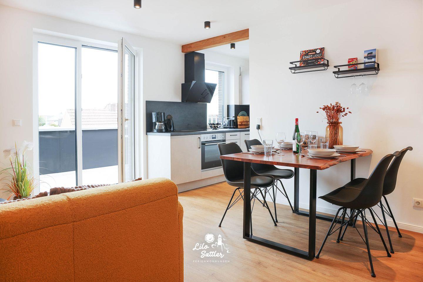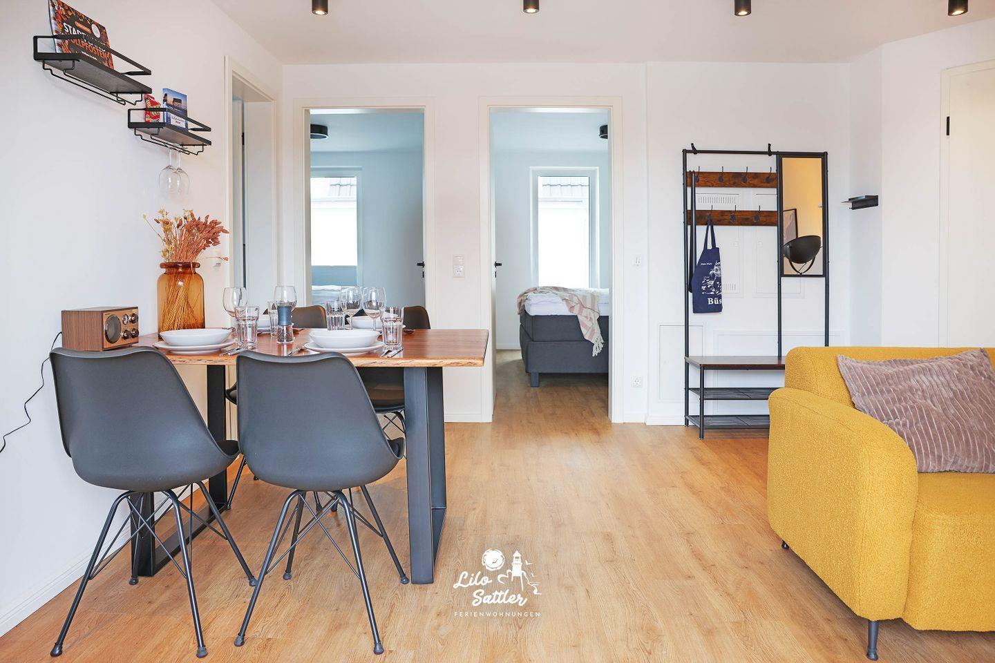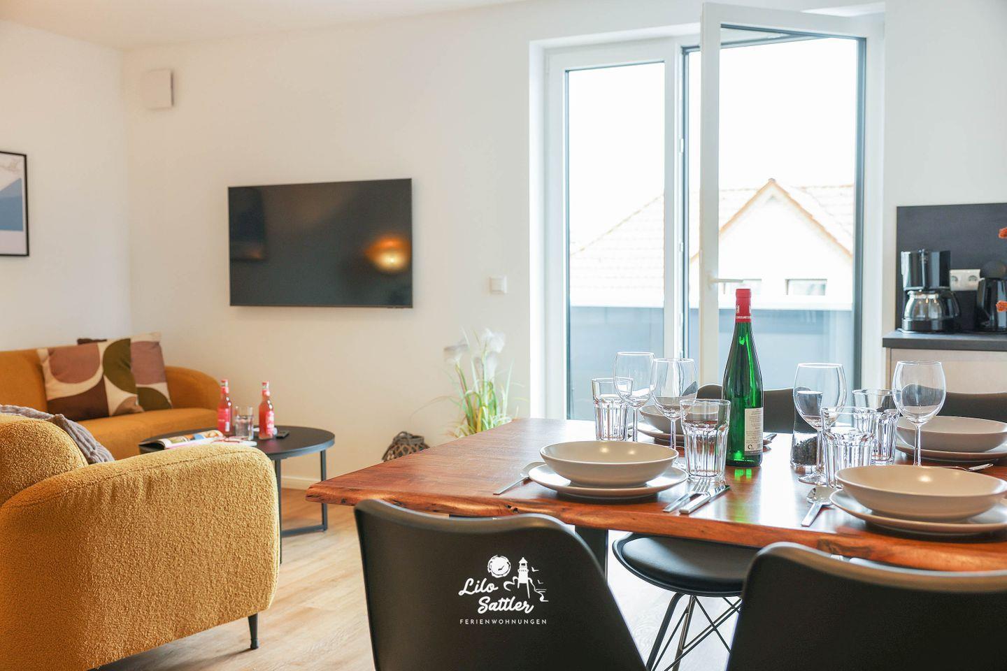 Moderne Ferienwohnung Deichstuben Whg. 2 in Büsum, mit Balkon, zwei Schlafzimmern, Nähe Deich & Hafen.