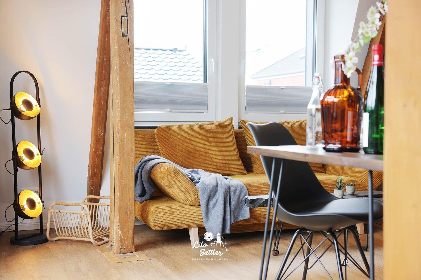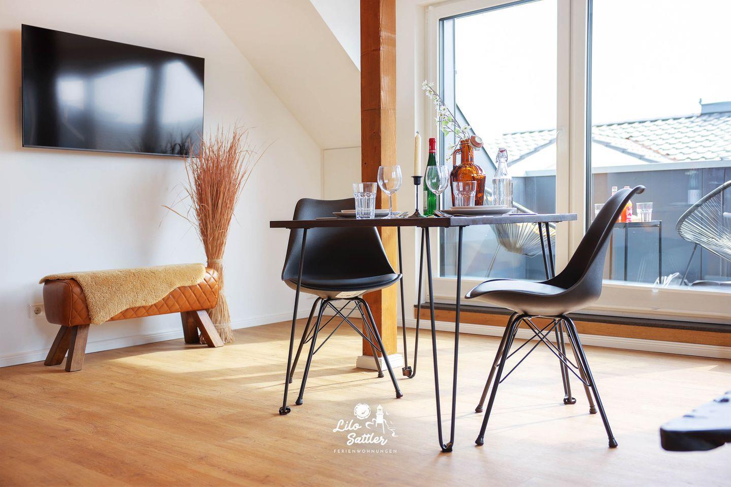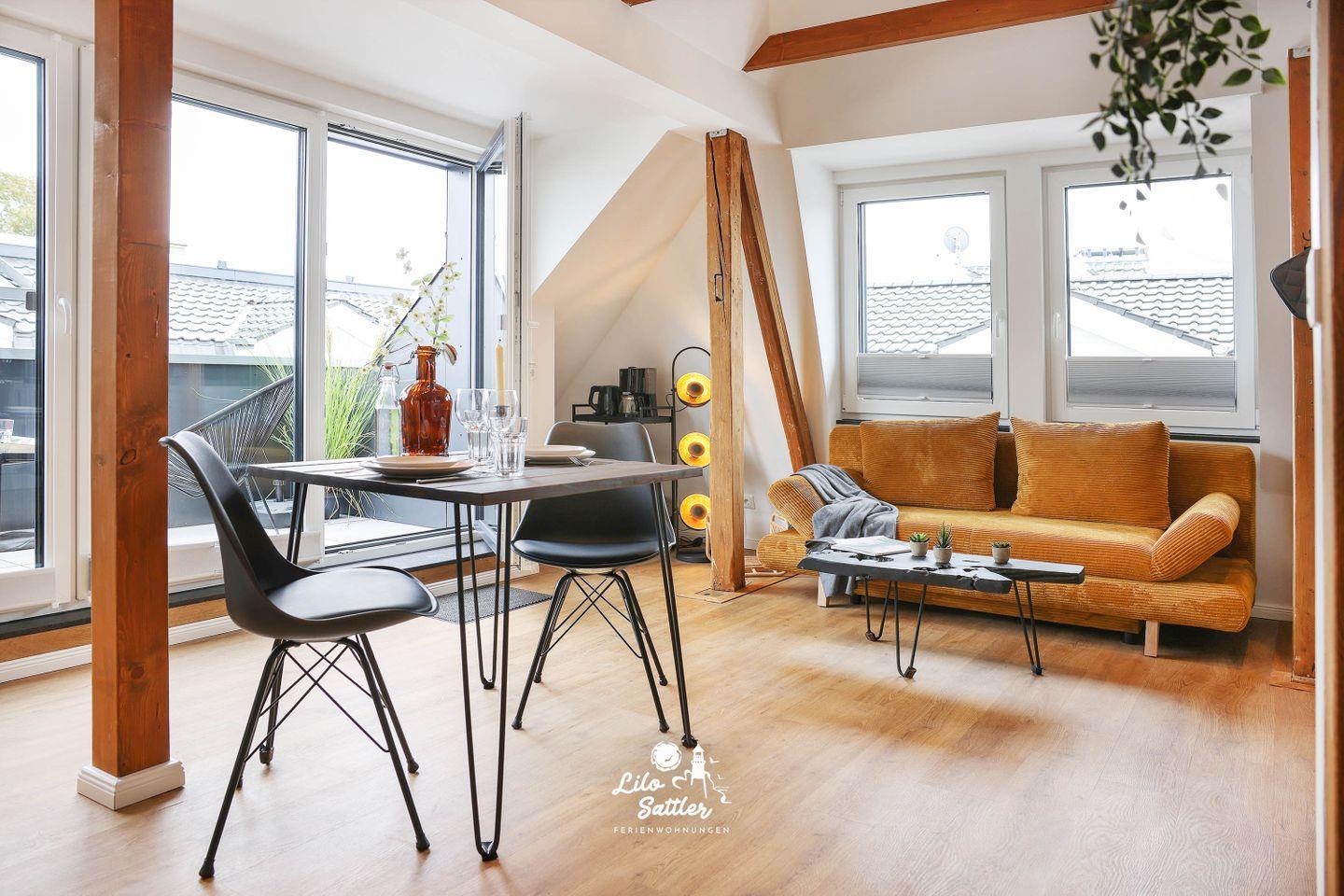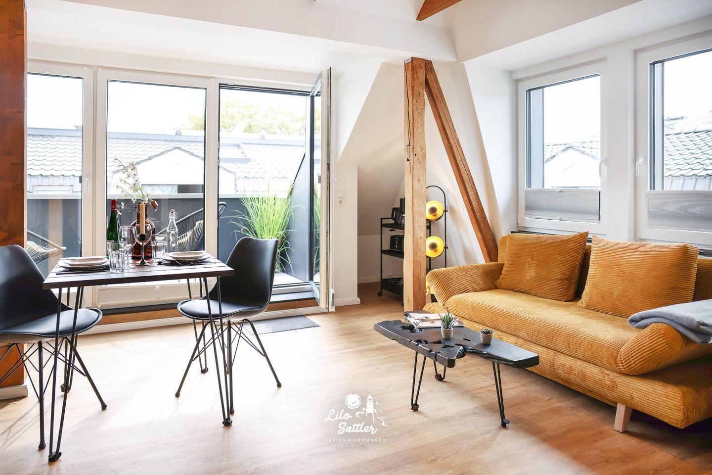 Stilvolle Ferienwohnung mit Loft-Charakter, Balkon und moderner Ausstattung in Büsum nahe Deich und Hafen.