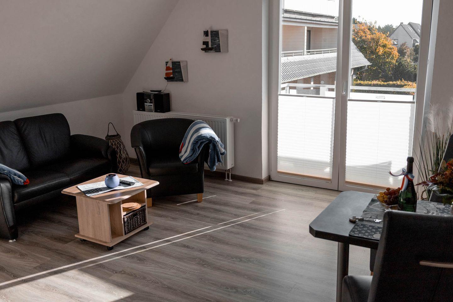Komfortable Ferienwohnung für Paare in Büsum, nahe Strand und Stadtzentrum, mit Balkon und privatem Parkplatz.