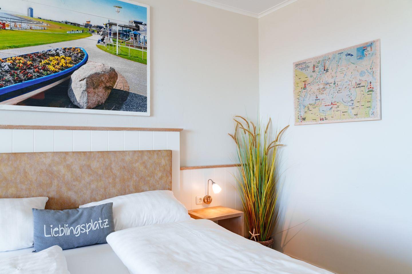 Den Ortskern mit dem Museumshafen oder das Erlebnisbad „Meer Zeit” mit Saunalandschaft erreichen Sie fußläufig in wenigen Minuten oder ganz bequem mit der nur wenige Schritte entfernten Kleinbahn. Von der nahegelegenen „Watt'n Insel” in der Familienlagune können Sie Kitesurfer beobachten oder barfuß eine Wattwanderung unternehmen.
