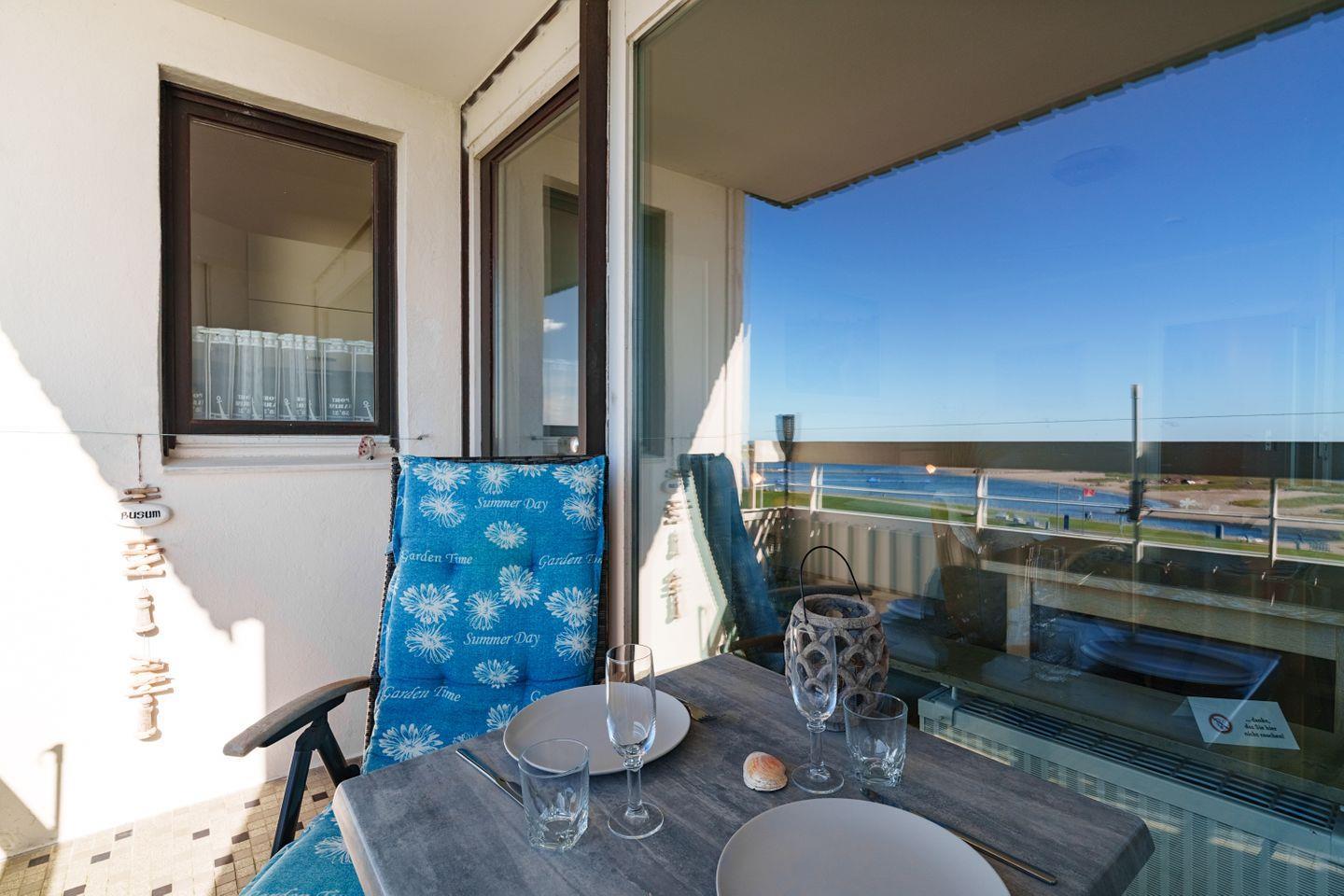 Helles Apartment im 5. OG mit Westbalkon und malerischem Blick auf die Familienlagune, nur 200 m vom Strand in Büsum.