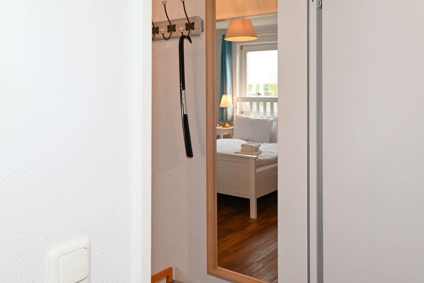 Die gemütliche 2-Raum-Ferienwohnung im Ferienhaus Cumulus liegt im zweiten Obergeschoss und bietet ohne Fahrstuhl einen wunderschönen Rückzugsort für Paare oder kleine Familien, die Ruhe und Erholung an der Küste suchen. Vom Balkon aus genießen Sie einen leichten Meerblick über den Deich zwischen den Häusern hindurch. Durch die Südwest-Ausrichtung scheint hier am Nachmittag und Abend die Sonne, sodass Sie den Tag bei einem Glas Wein entspannt ausklingen lassen können.