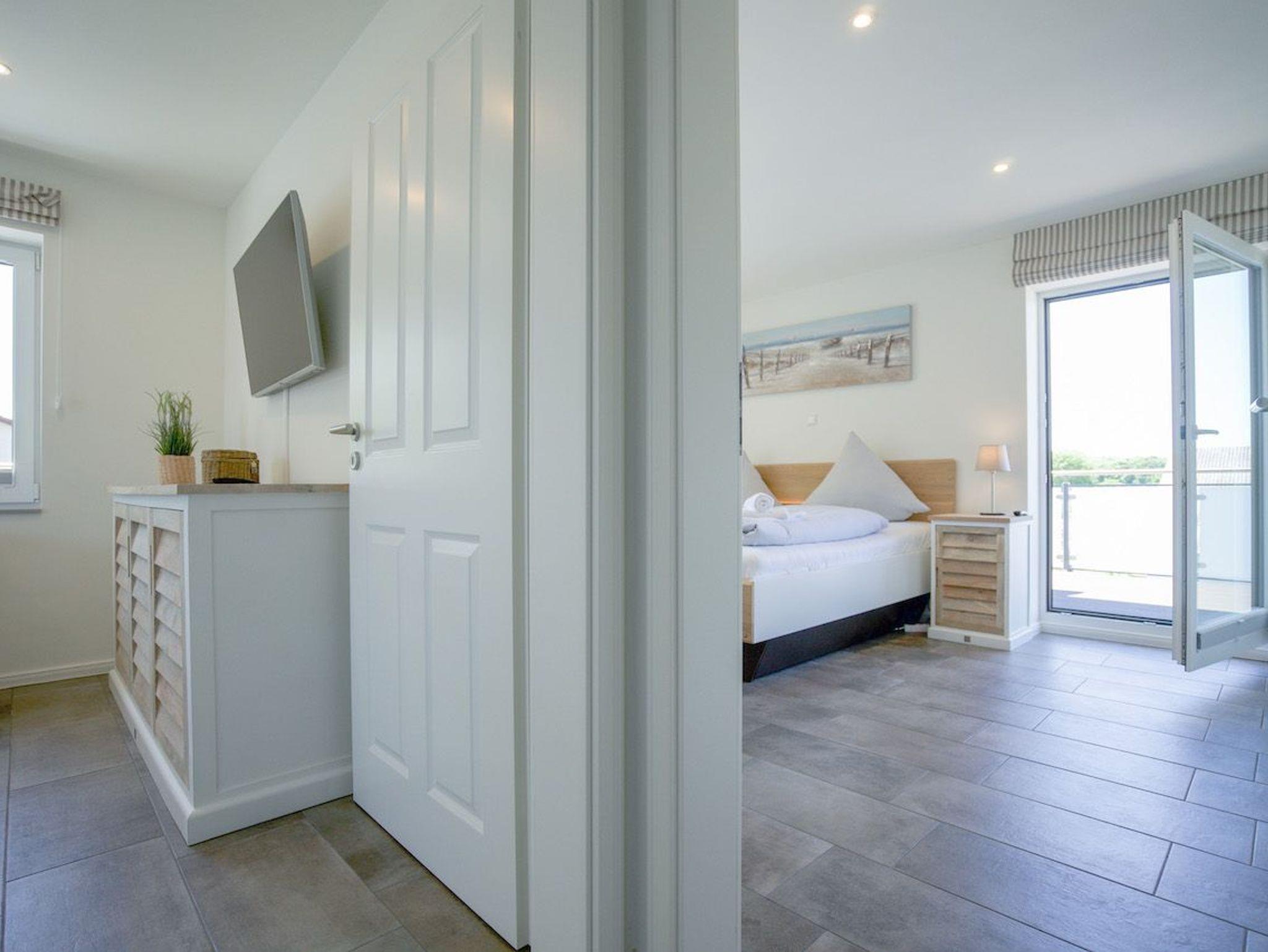 Schlafzimmer 1 hat Zugang zu einem separaten Balkon, Schlafzimmer 2 zum großzügigen Balkon, weiterhin sind sie mit Kleiderschrank/Sideboard sowie je eigenem TV ausgestattet.