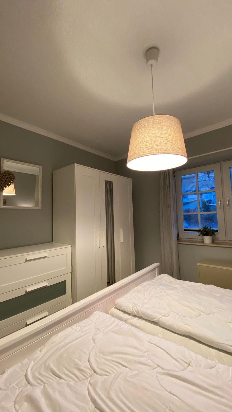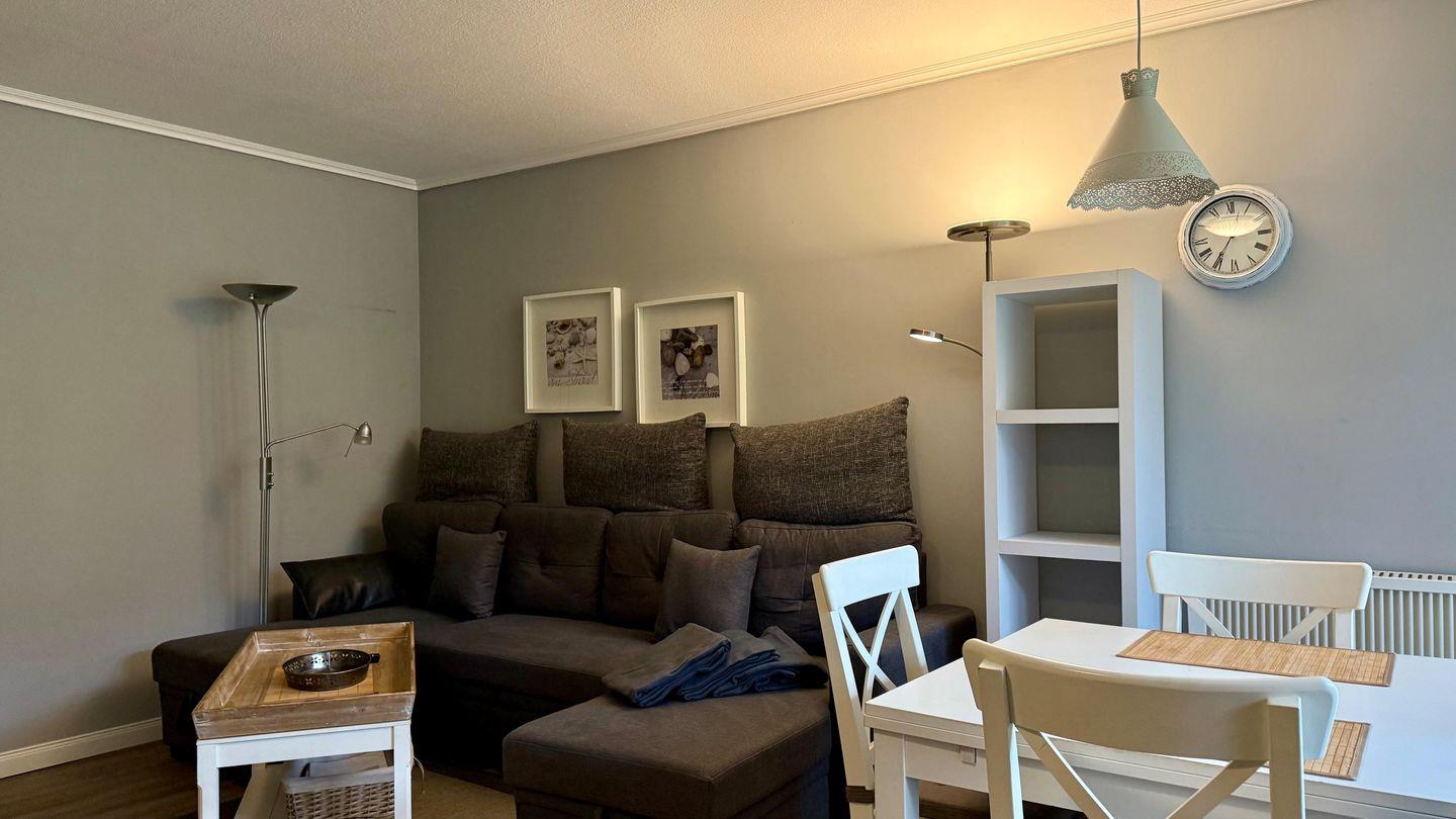 Die moderne Ausstattung der Ferienwohnung lässt keine Wünsche offen. Im Schlafzimmer erwartet Sie ein gemütliches Bett, das zum Traumschlafen einlädt. Das stilvolle Wohnzimmer ist mit einer Sofaecke und einem Tisch ausgestattet, ideal für entspannte Abende oder gesellige Spiele. Außerdem finden Sie hier einen Fernseher mit Kabelanschluss sowie eine HiFi-Anlage für noch mehr Entertainment.