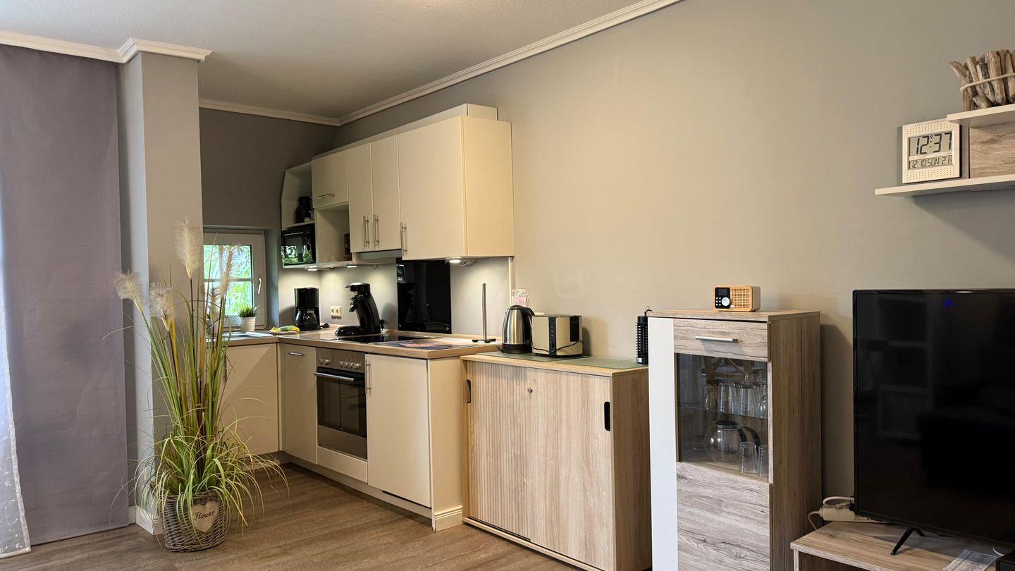 Modernes, strandnahes Zweiraum-Apartment in Büsumer Deichhausen mit Terrasse und Gartenblick, ideal für erholsame Nordseeferien.