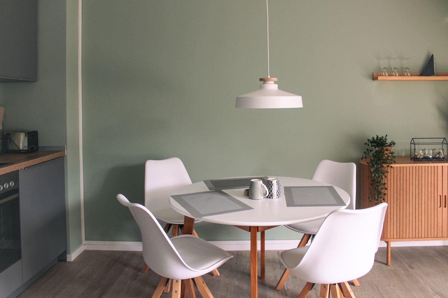 Mit einer großzügigen Fläche von 60 m² und zwei charmanten Schlafzimmern ist die Ferienwohnung ideal für kleine Gruppen oder Paare, die Wert auf Privatsphäre und Komfort legen. Der offene Wohn- und Essbereich ist der perfekte Ort für gemütliche Abende. Die moderne Küche, ausgestattet mit einem Cerankochfeld, Backofen und Kühlschrank, ermöglicht Ihnen die Zubereitung Ihrer Lieblingsgerichte. Egal, ob Sie einen herzhaften Frühstück starten oder ein romantisches Abendessen planen, hier sind Sie bestens versorgt.