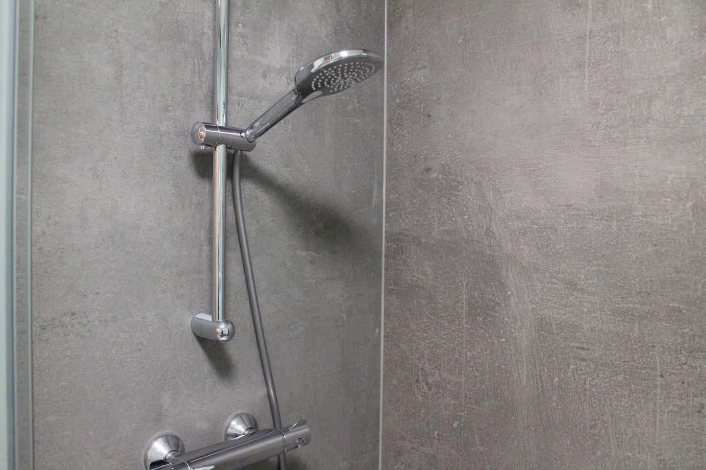 Ein besonderes Highlight der Ferienwohnung ist das moderne Badezimmer mit einer ebenerdigen Dusche, wo nach einem Strandtag erholsame Momente garantiert sind. Das zeitgemäße Design sowie der Haartrockner sind nur einige der Annehmlichkeiten, die Ihren Aufenthalt noch angenehmer machen.