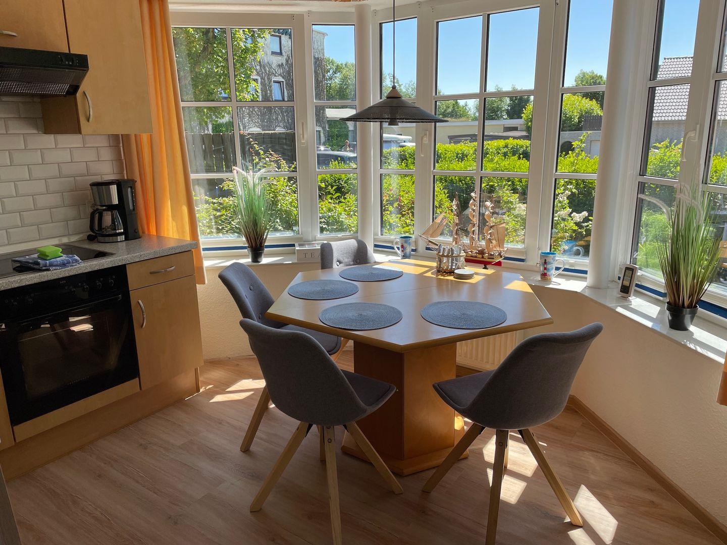 Diese, schön geschnittene, 54 qm große Ferienwohnung liegt ca. 150 Meter entfernt vom Strand. Das gemütlich eingerichtete Wohnzimmer verfügt über eine Couch, einen bequemen TV-Sessel, Kabel-TV und Radio. Ihre Mahlzeiten können Sie in der schönen Erker-Essecke einnehmen. Die Küchenzeile ist komplett ausgestattet mit Ceranfeld, Backofen, Wasserkocher, Mikrowelle, Kaffeemaschine, Kühlschrank mit Gefrierfach und Toaster. Das Highlight im Bad ist die große, ebenerdige Dusche, natürlich vorhanden sind ein Licht-Spiegel und ein Haartrockner. Das Schlafzimmer besteht aus einem großen Doppelbett, Nachtkonsolen und einem dreiteiligen Kleiderschrank mit viel Platz für Ihre Kleidung. Die Terrasse lädt zum Entspannen ein, hier finden Sie einem Gartentisch mit Stühlen. Büsumer Deichhausen ist kurtaxfrei, das heißt, Sie erhalten Ihre Gästekarte bei Ihrer Anreise kostenfrei von uns. Diese berechtigt zum Besuch unseres Strandes gleichfalls des Strandbereichs in Büsum und weiteren Orten an Nord- und Ostseeküste. Alle weiteren Informationen finden Sie in unserer Gästemappe, welche in der Wohnung ausliegt. Bettwäsche und Handtücher können gegen Entgelt dazu gebucht werden. Babybett und Hochstuhl stellen wir Ihnen gern kostenfrei zur Verfügung.