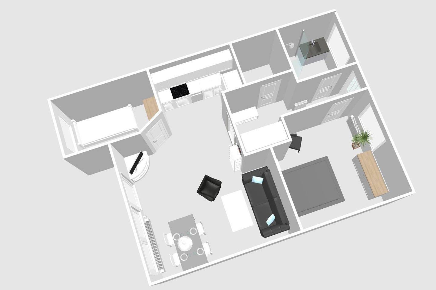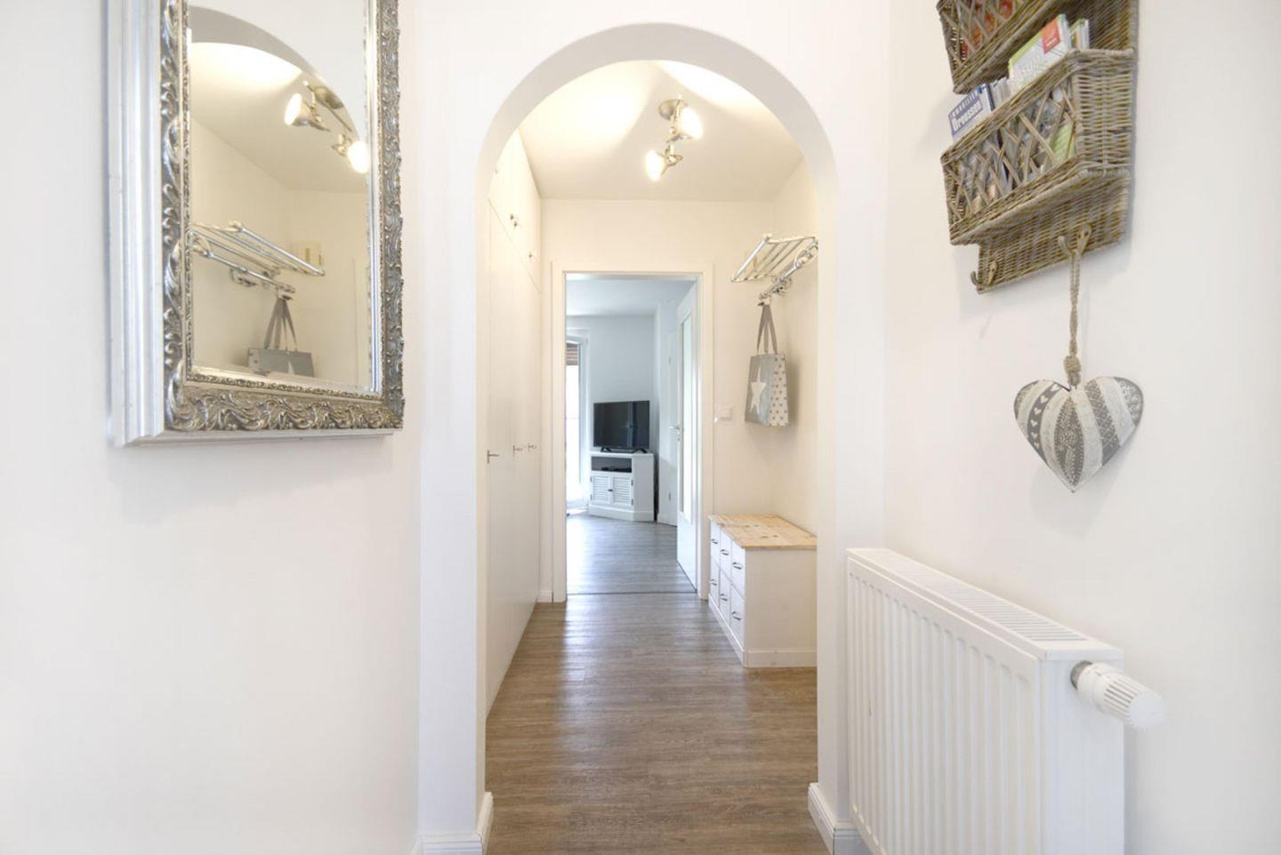 Das Schlafzimmer ist zum Träumen perfekt eingerichtet. Laminatboden sorgt für ein warmes und einladendes Ambiente, das zum Entspannen einlädt. Neben einem zweiten Schlafzimmer gibt es ein modernes Badezimmer mit einer bodengleichen Dusche, einem Haartrockner und einem großen Spiegel.