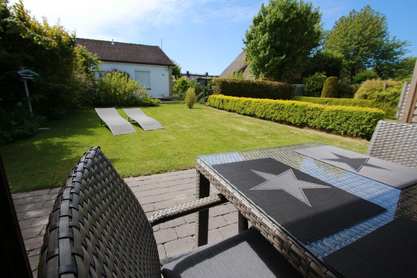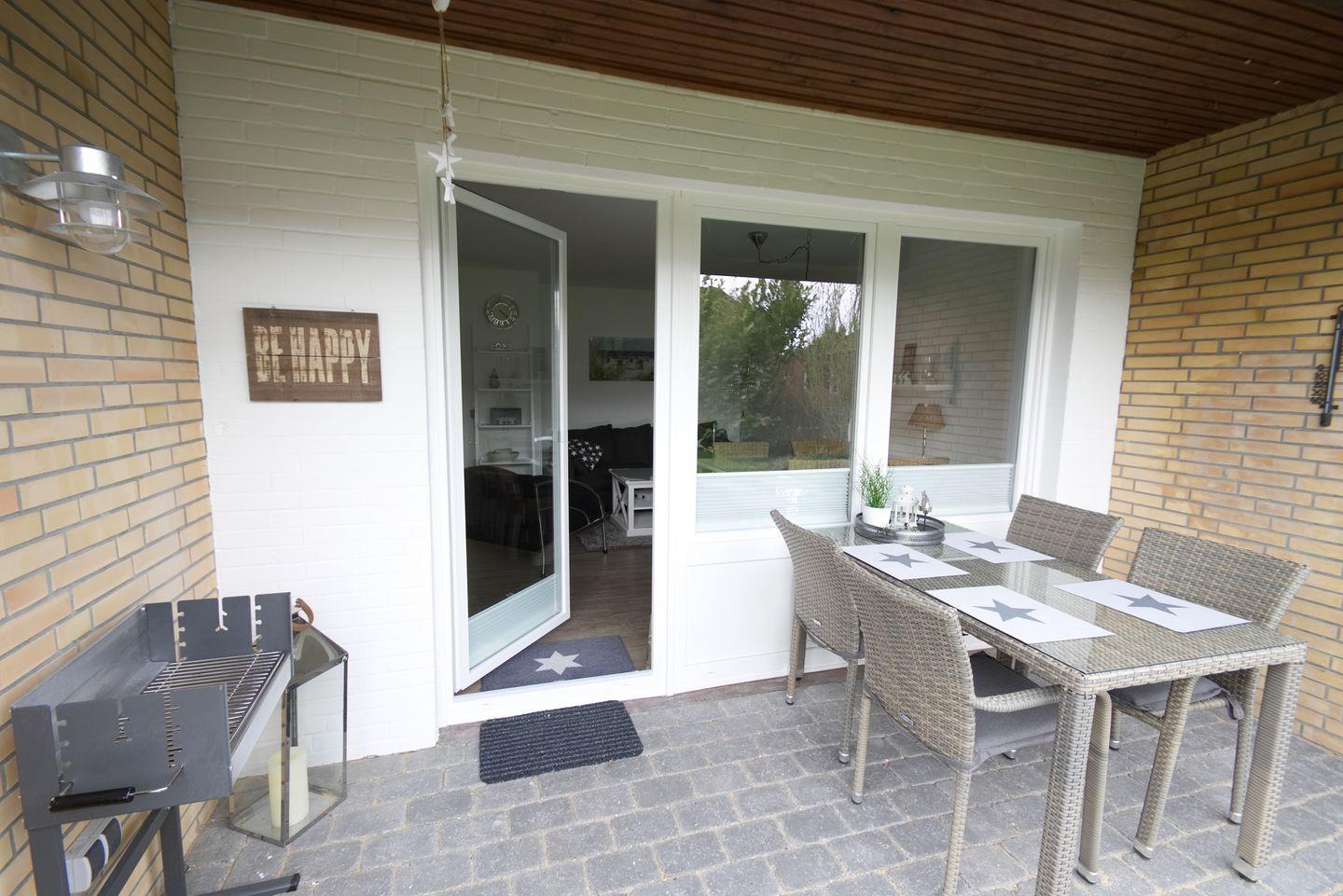 Ihr Feriendomizil ist am Ende einer Bungalow-Wohnanlage und vermittelt Ihnen das Gefühl in einem eigenen kleinen Ferienhaus Nordseeurlaub zu genießen. Sie haben einen eigenen Eingang, eine überdachte Terrasse und sogar einen eigenen kleinen Garten mit Rasenfläche.
