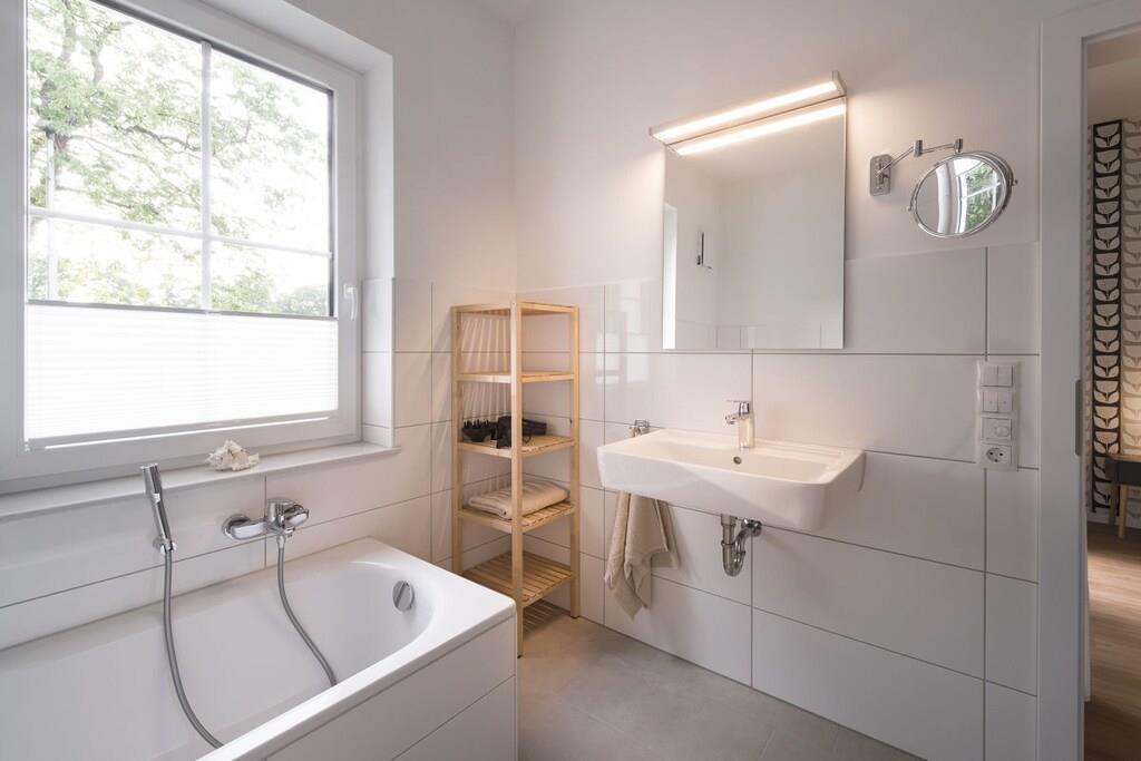 Herzlich Willkommen in unserer freundlichen und hellen 5 Sterne 2-Zimmer Ferienwohnung im Kurort Bad Zwischenahn. Die Wohnung ist modern ausgestattet und sorgt zusätzlich durch das antike Flair der Inneneinrichtung für ein luxuriöses Wohlfühlerlebnis für maximal 2 Erwachsene. Für ein besonders schönes Ambiente sorgen die edlen Bodenbeläge sowie die Fußbodenheizung im gesamten Wohnraum. Das Schlafzimmer ist mit einem elektrisch verstellbarem Boxspring-Doppelbett ausgestattet und bietet einen direkten Durchgang zur Terrasse. Das Herzstück der Ferienwohnung ist der großzügige, offene Wohn-Essbereich, der mit einer modernen, voll ausgestatteten hellen Küche mit E-Herd, Mikrowelle, Backofen und Spülmaschine, keine Wünsche offen lässt. Starten Sie Ihren Tag mit einem frisch gemahlenen Kaffee aus dem bereit-stehenden Kaffee-Vollautomaten. Spielen Sie Ihre Lieblingsmusik über die Bluetooth Hifi-Anlage ab, nutzen Sie das kostenfreie WLAN oder schauen Sie sich Ihre Lieblingsserien über Netflix auf dem TV an. Die großzügige Ausstattung bietet eine perfekte Kombination aus Komfort und Lifestyle. Das Badezimmer mit Fenster lädt Sie zu einem ausgiebigen Schaumbad in der Wanne ein und bietet alternativ auch eine separate ebenerdige Dusche. Für Ihren Aufenthalt bieten wir Ihnen frische Bettwäsche, Handtücher, frische Bademäntel und viele weitere Extras kostenfrei. Zur Ausstattung gehören ebenfalls Waschmaschine und Trockner sowie ein Bügeleisen und Bügelbrett. Bei einem Aufenthalt von mehr als einer Woche, kann die Wohnung auf Ihren Wunsch hin kostenfrei zwischengereinigt werden. Die "Ferienwohnung am See" ist eine kleine Oase zum Wohlfühlen und entspannen. Wir freuen uns auf Ihre Buchung!