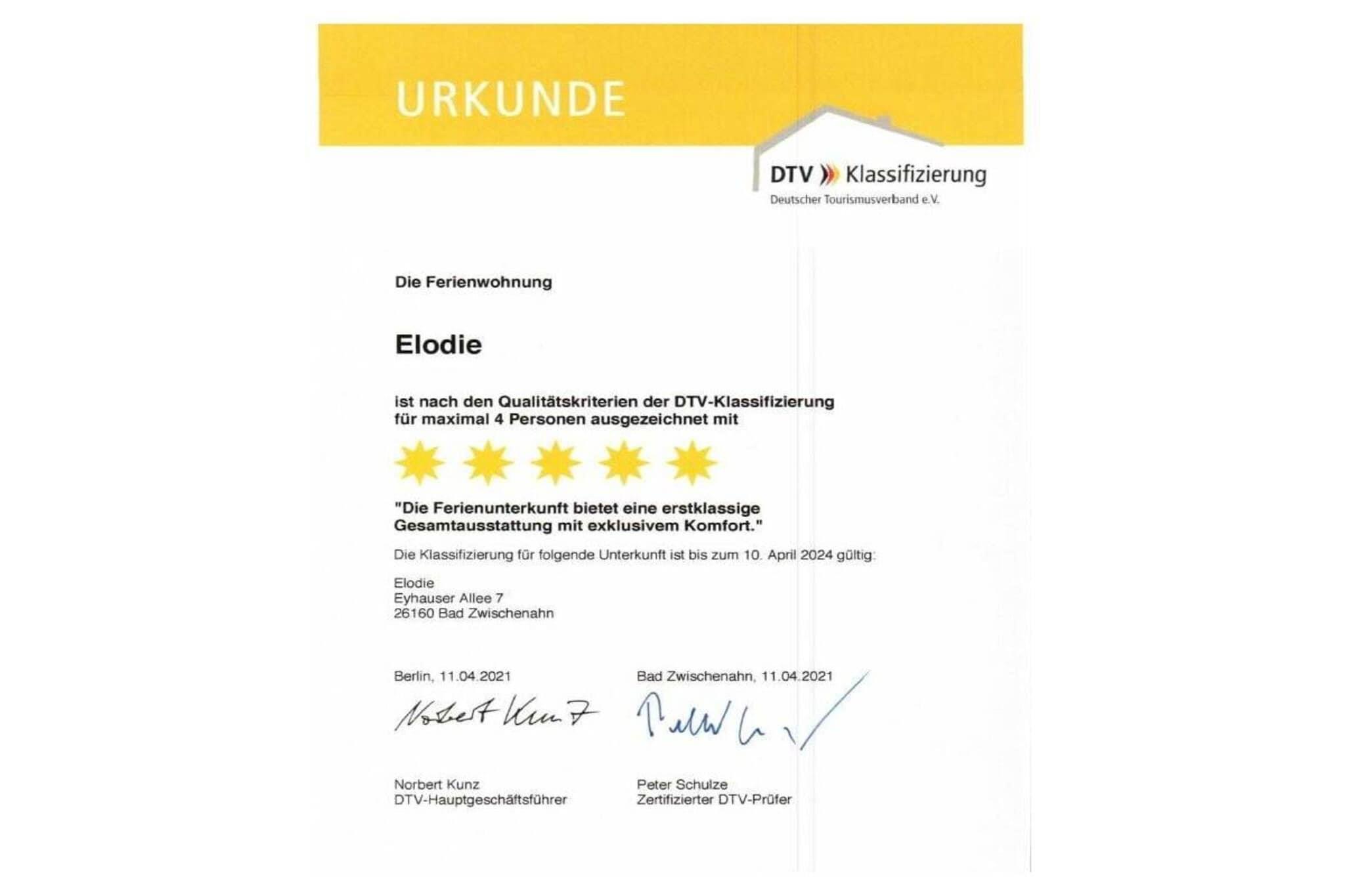 Herzlich willkommen in unserer freundlichen und hellen 5 DTV Sterne 3-Zimmer Ferienwohnung im Kurort Bad Zwischenahn Die Ferienwohnung befindet sich im Erdgeschoss eines Neubaus in einer der besten und ruhigsten Lagen Bad Zwischenahns mit einer nach Westen ausgerichteten Terrasse und liegt direkt angrenzend zu unserer Ferienwohnung am See "Flora". Die Wohnung verfügt über einen eigenen extra großen Stellplatz sowie Fahrradschuppen. Viele bodentiefe Fensterfronten schaffen eine angenehme Helligkeit. Sie genießen den Blick ins Grüne. Die Wohnung ist modern ausgestattet und sorgt zusätzlich durch das antike Flair der Inneneinrichtung für ein luxuriöses Wohlfühlerlebnis für maximal 4 Erwachsene. Für ein besonders schönes Ambiente sorgen die edlen Bodenbeläge sowie die Fußbodenheizung im gesamten Wohnraum. Das erste Schlafzimmer ist mit einem elektrisch verstellbarem Boxspring-Doppelbett und Kleiderschrank ausgestattet und bietet einen direkten Durchgang zur Terrasse sowie einen eigenen Smart-TV. Im zweiten Schlafzimmer stehen zwei einzelne Boxspring-Betten (90x200cm) für Sie bereit. An jedem Bett steht ein kleiner Nachttisch mit einer Lampe. Das Fenster ist zur Terrasse ausgerichtet und bietet ebenso einen Blick ins Grüne. Das Herzstück der Ferienwohnung ist der großzügige, offene Wohn-Essbereich. Die moderne, voll ausgestattete helle Küche mit E-Herd, Mikrowelle, Backofen und Spülmaschine sowie vielen gängigen Elektrogeräten lässt keine Wünsche offen. Starten Sie Ihren Tag mit einem frisch gemahlenen Kaffee aus dem bereitstehenden Kaffee-Vollautomaten. Spielen Sie Ihre Lieblingsmusik über die Bluetooth Hifi-Anlage ab, nutzen Sie das kostenfreie WLAN oder schauen Sie sich Ihre Lieblingsserien über Netflix auf dem TV an. Zum Multimedia Equipment gehört auch ein Tablet und eine Alexa. Die großzügige Ausstattung bietet eine perfekte Kombination aus Komfort und Lifestyle. Das Badezimmer enthält eine ebenerdige Dusche sowie eine Heizung für die Handtücher. Für Ihren Aufenthalt bieten wir Ihnen frische Bettwäsche, Handtücher, frische Bademäntel und viele weitere Extras kostenfrei. Zur Ausstattung gehören ebenfalls ein Wäschetrockner (Waschmaschine & Trockner in einem) sowie ein Bügeleisen und Bügelbrett. Im Garten steht für Sie ein Grill, eine Sitzgruppe, eine Gartenliege sowie ein Strandkorb und Sonnenschrim bereit. Draußen im abschließbaren Fahrradschuppen finden Sie Ihr Leihfahrrad und eine Ladestation für e-Bikes und 2x Paar Nordic-Walking Stöcke. Als Mitglied im Allgemeinen Deutschen Fahrrad-Club (ADFC) sind wir als fahrradfreundliche Ferienwohnung "Bett + Bike" zertifiziert. Die Ferienwohnung am See "Elodie" ist eine kleine Oase zum Wohlfühlen und entspannen.