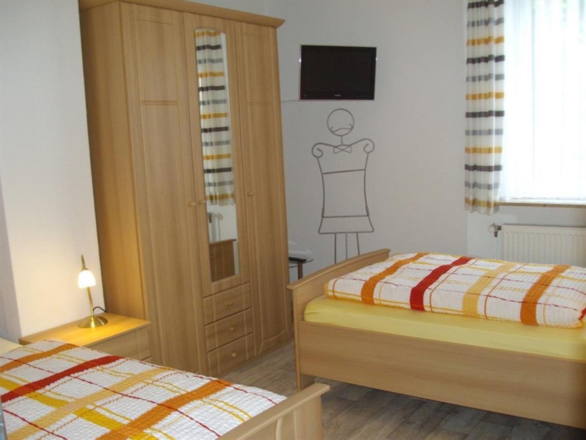 Die Ferienwohnung im Erdgeschoss (80 qm) ist über einen separaten Eingang erreichbar. Die Wohnung hat zwei Schlafzimmer, ein Schlafzimmer mit Doppelbett und ein weiteres mit zwei Einzelbetten. Die Lattenroste in den Betten sind am Kopf- und Fußende verstellbar. In beiden Schlafzimmern und im Wohnzimmer ist jeweils ein Flachbild-TV mit Kabelanschluß vorhanden. Im großen Wohnzimmer (ca. 27 qm) ist neben einer Sitzecke mit sechs Sitzplätzen noch eine separate Essecke mit vier Sitzplätzen eingerichtet. Die separate Küche ist mit einer Einbauküche ausgestattet und hat ebenfalls vier Sitzplätze. Neben dem üblichen Inventar und Geräten in einer Einbauküche sind selbstverständlich auch ein Toaster und ein Eierkocher vorhanden. Das Badezimmer ist mit Dusche und WC ausgestattet, und hier befindet sich eine Waschmaschine für den persönlichen Gebrauch. Zur Wohnung gehört eine nicht einsehbare Terrasse (44 qm), die entsprechend mit Gartenmöbeln und Liegen ausgestattet ist. Ein eigener PKW-Stellplatz sowie ein eigener Abstellraum für Fahrräder gehören ebenfalls zu dieser Wohnung.