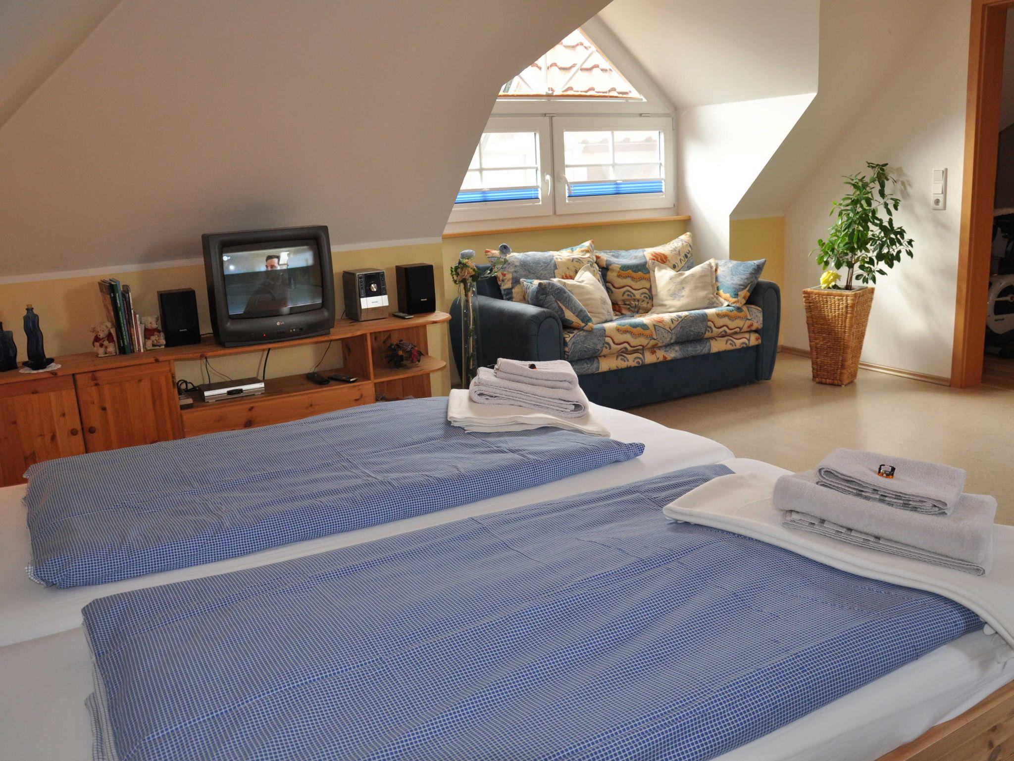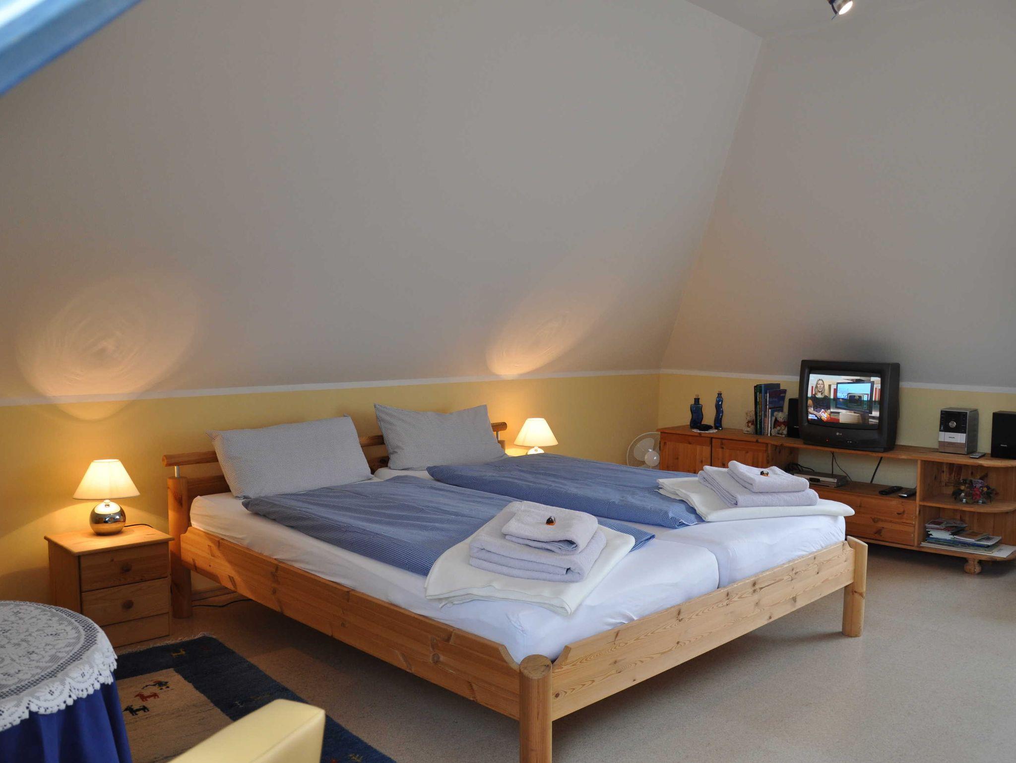 Die Ferienwohnung befindet sich im Obergeschoss eines Zweifamilienhauses. Sie ist ca. 76 qm groß. Das Wohnzimmer ist hell, gemütlich und komfortabel eingerichgtet. Das geräumige Schlafzimmer verfügt über ein Doppelbett, Schlafsofe, TV und Stereoanlage. In der Küche finden sie eine kompl. Einbauküche mit Geschirrspülmaschine, E-Herd, Microwelle usw. Im modernen Badezimmer mit Dusche befinden sich Haartrockner und Handtücher. Auf der Galerie lädt eine gemütliche Sitzgruppe zum Verweilen ein. Im Garten steht ein gedmütlicher Sitzplatz mit grossem Sonnenschirm für unsere Gäste bereit.