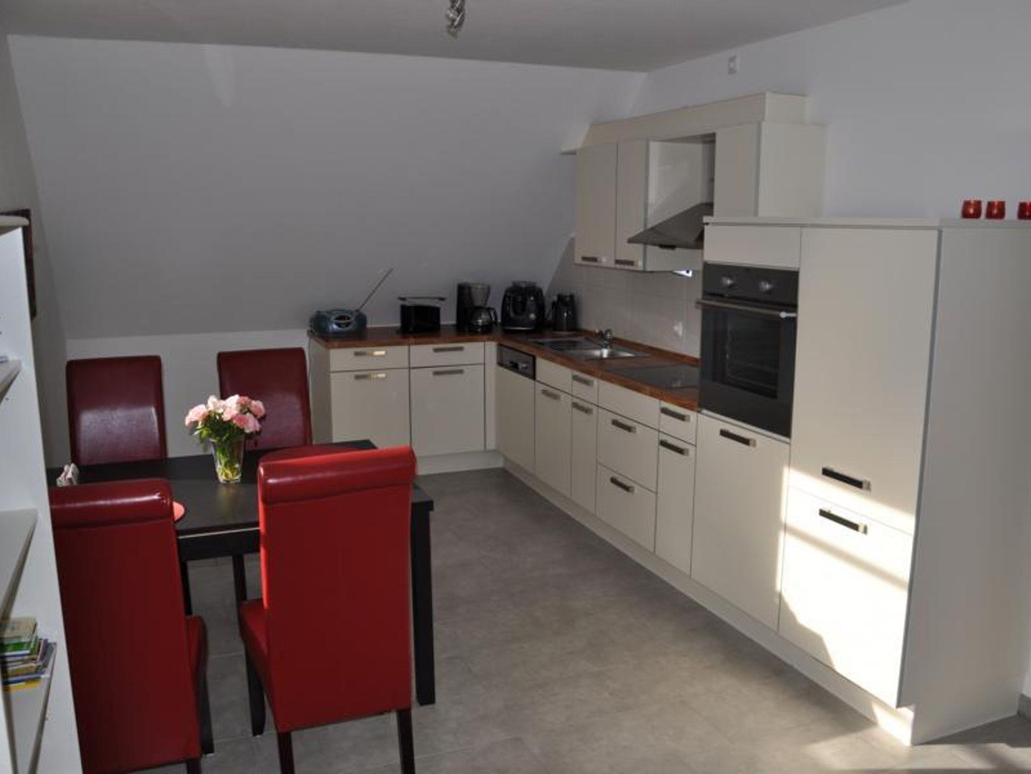 Unsere neue helle Komfortferienwohnung befindet sich in einer sehr schönen und ruhigen Lage im 1. Obergeschoss mit separatem Eingang. Neben einem Schlafzimmer mit Doppelbett sowie einem Badezimmer mit Badewanne, Dusche & WC verfügen Sie über eine komplett eingerichtete Küche. Der helle, freundliche Wohnraum ist mit SAT-TV und Radio CD ausgestattet. Des weiteren haben Sie auf der Wohnzimmercouch eine weitere Schlafmöglichkeit. Bei schönem Wetter können Sie im Garten entspannen. Sie haben eine direkte Anbindung an die gut ausgeschilderten Rad- und Wanderwege.