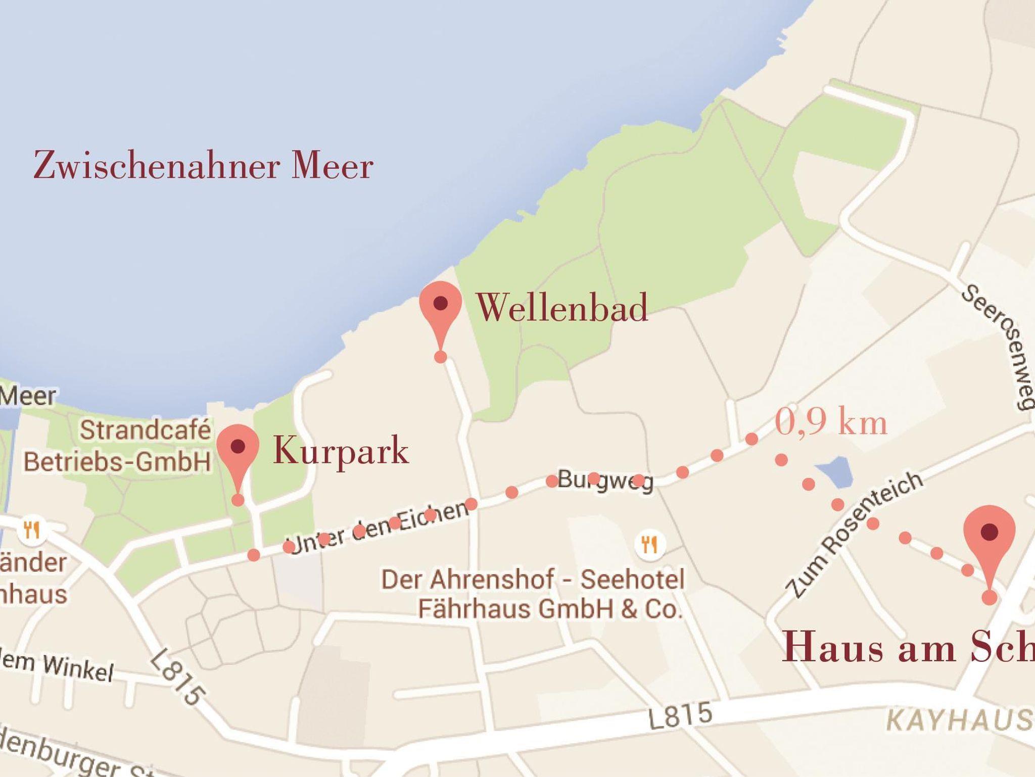 Die Entfernung zum Kurpark, zum Wellenbad/Rehazentrum und zum Zwischenahner Meer beträgt ca. 800 Meter. Auch ein Supermarkt mit Bäcker/Cafe ist in fußläufiger Nähe.
