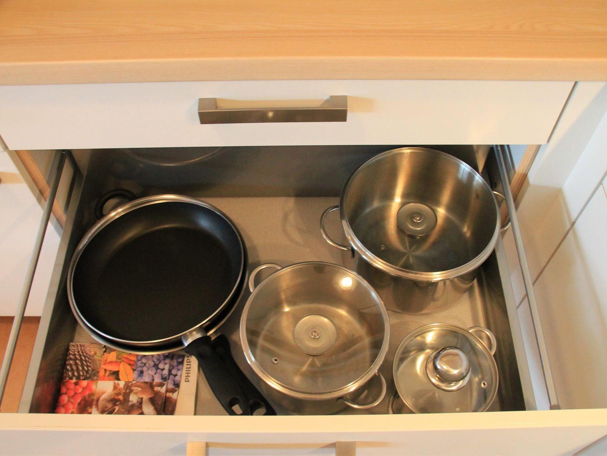 Das Appartement vereint Wohnen, Essen, Kochen und Schlafen in harmonischer Weise. Die Küche verfügt über einen Hochkühlschrank mit Gefrierfach, Herd, Backofen, Wasserkocher, Kaffeemaschine und Toaster. Die Einzelbetten sind 200 x 90 cm gross.