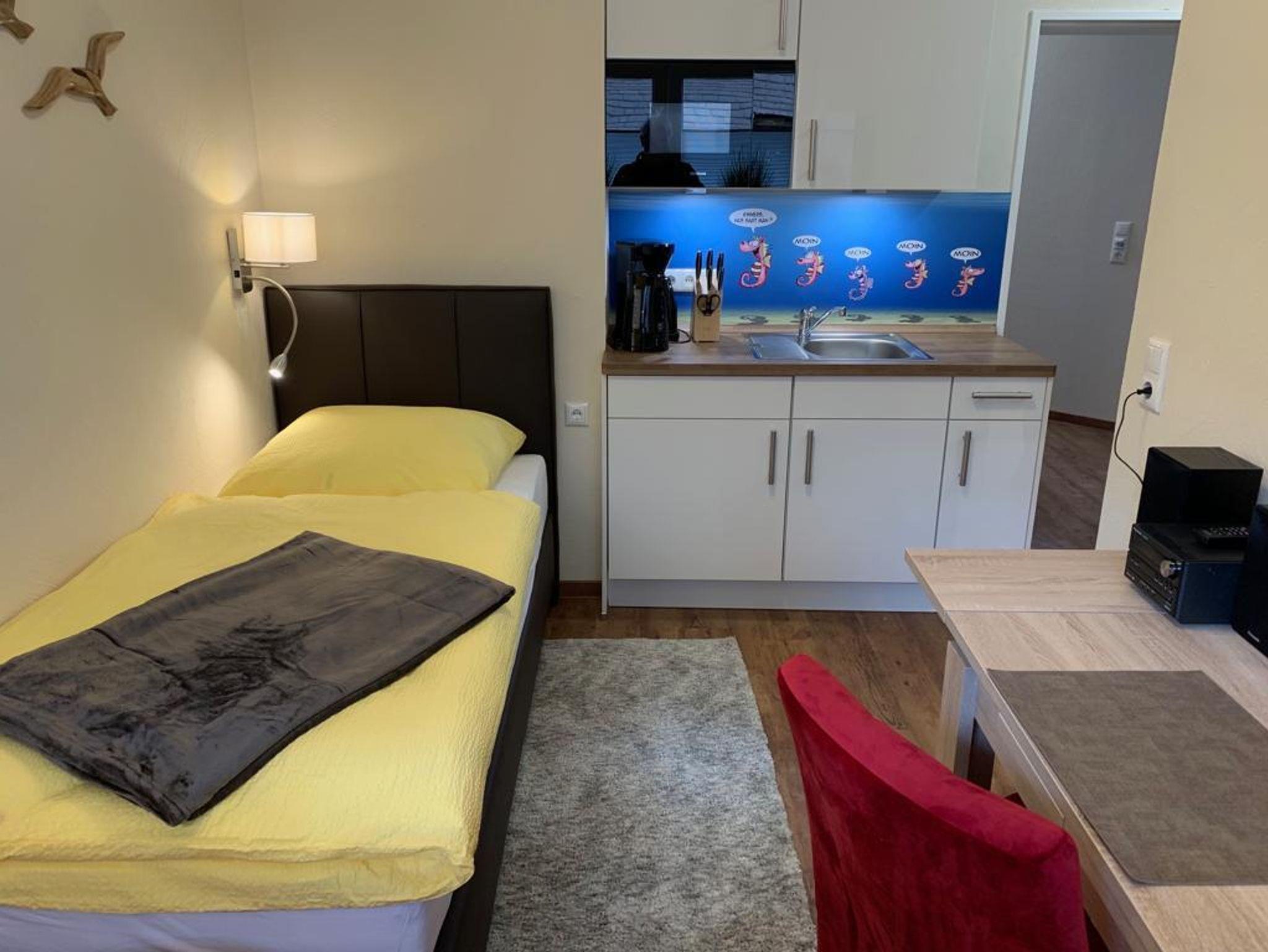 Kleines, hochwertiges Appartement in Bad Zwischenahn mit exklusivem Boxspringbett und moderner Küchenzeile für einen komfortablen Aufenthalt.
