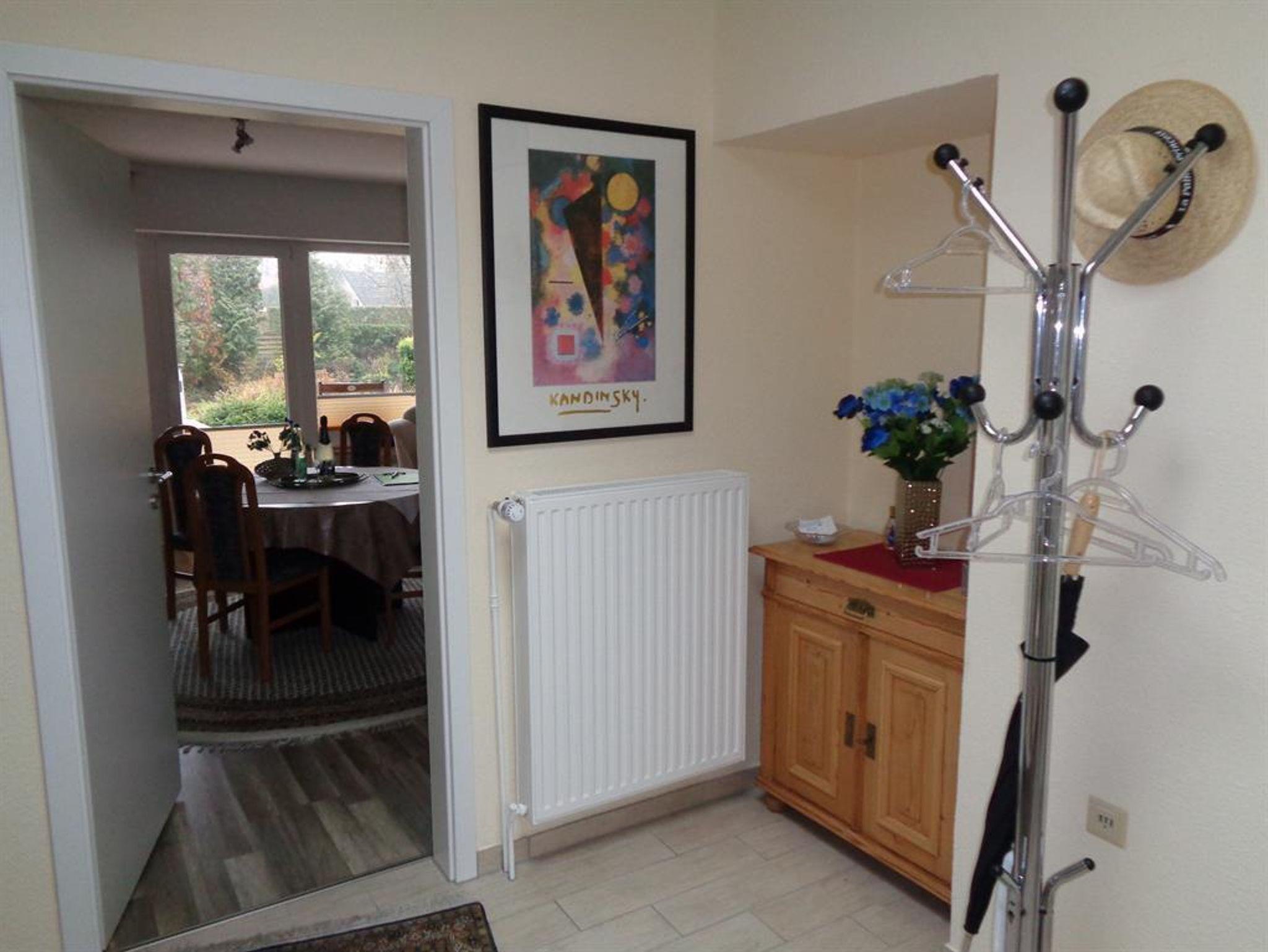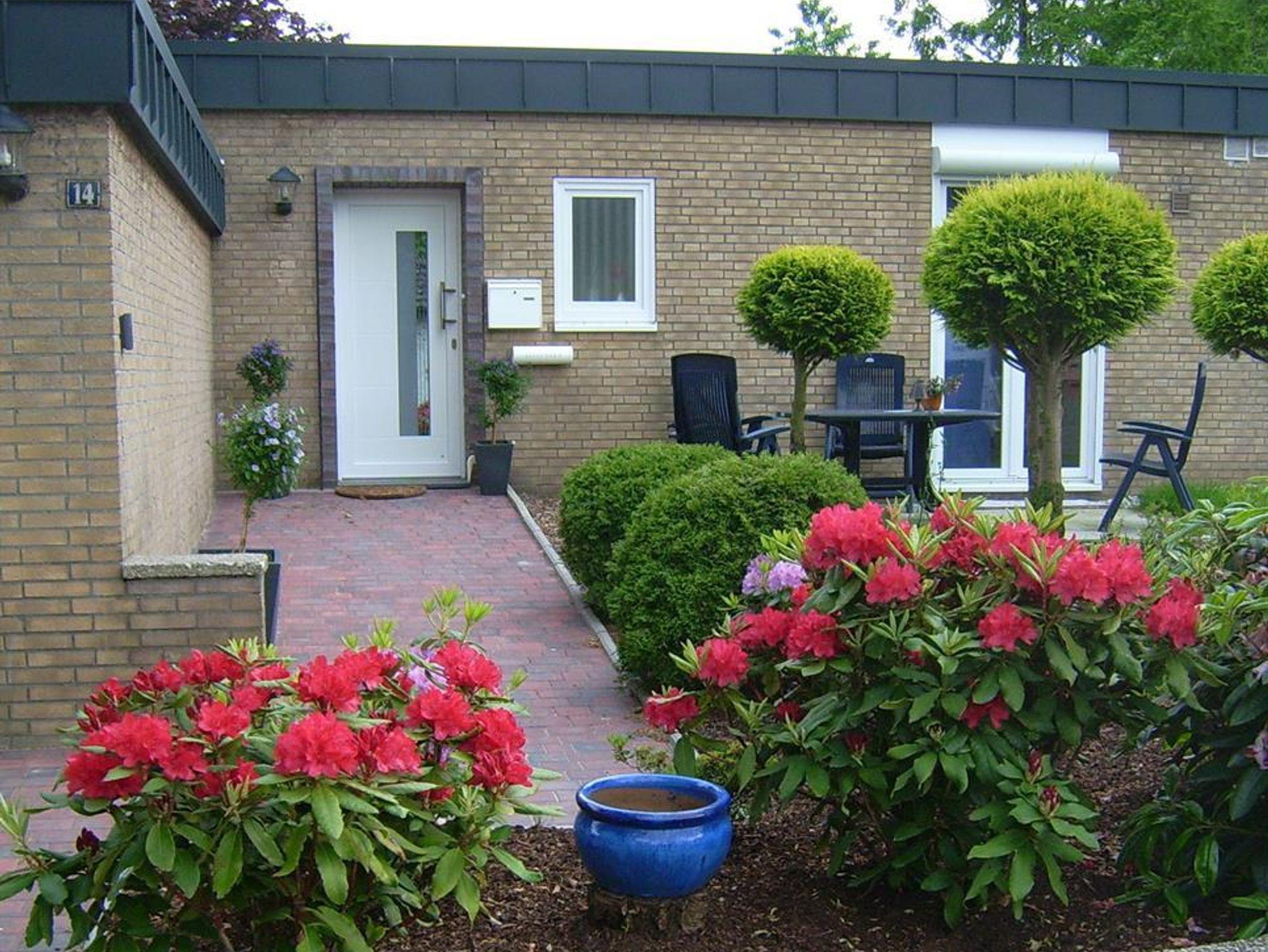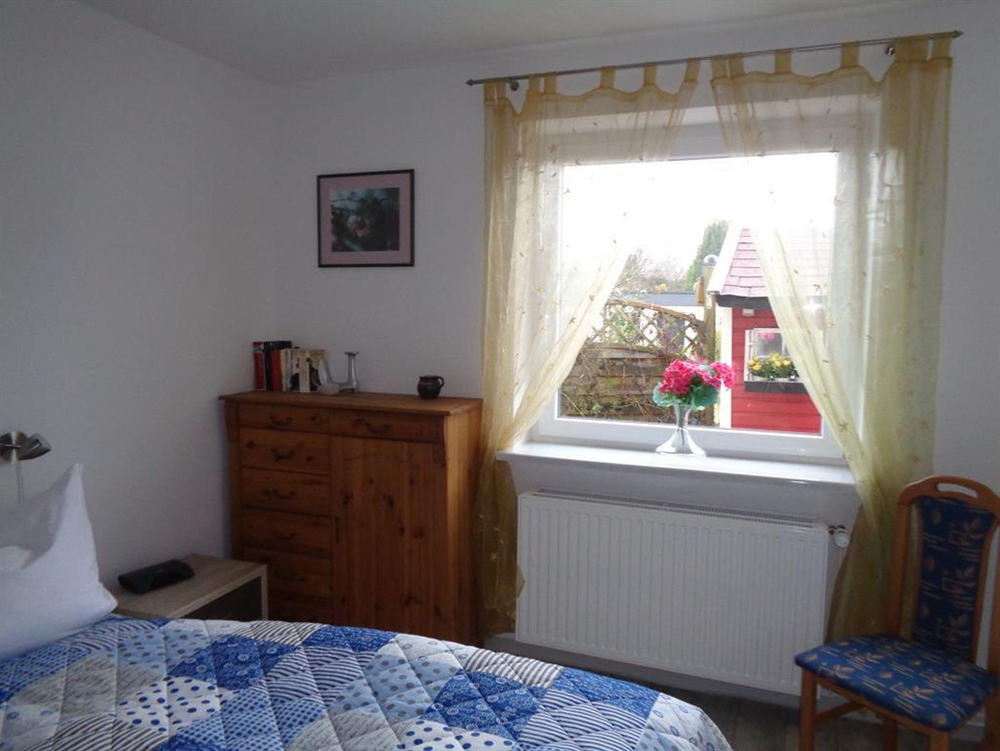 Ruhiges Ferienhaus am Ende einer Sackgasse. Es ist eine helle 120 qm große Wohnung mit 2 Terrassen und einer großen Spiel-, und Liegewiese. Das Haus ist für 5 Personen ausgestattet. Hier für stehen 3 Schlafzimmer, in Form von 2 Doppelzimmern und einem Einzelzimmer bereit. Das Bad verfügt über eine Großraumdusche, 1 WC, und einen Waschtisch mit einem Spiegelschrank und ein seperates Gäste-WC. Dieses Haus ist gut geeignet für 2 Paare, weil die Schlafzimmer durch einen Flur getrennt sind. Auch auch für Familien mit mehreren Kindern ist das Haus wunderbar geeignet. Vor der Küche befindet sich eine Frühstücks-, oder Dämmerschoppenterrasse. Auf der 14 qm großen Sonnenterrasse stehen, Gartenbestuhlung, 2 Sonnenliegen, ein Sonnenschirm und ein Strandkorb zur Verfügung. In der Küche befindet sich eine Essgruppe mit einer Eckbank und 2 Stühlen, Geschirrspühler, Herd (Ceranfeld) mit Backofen, Kühlschrank mit kleinem Gefrierfach.