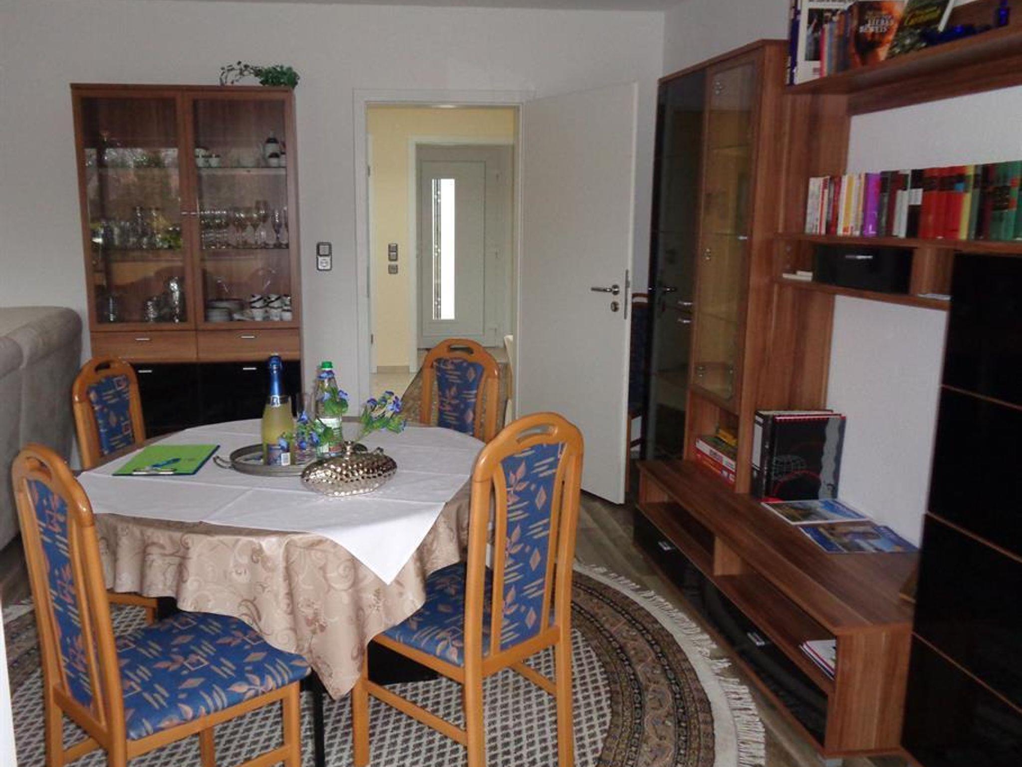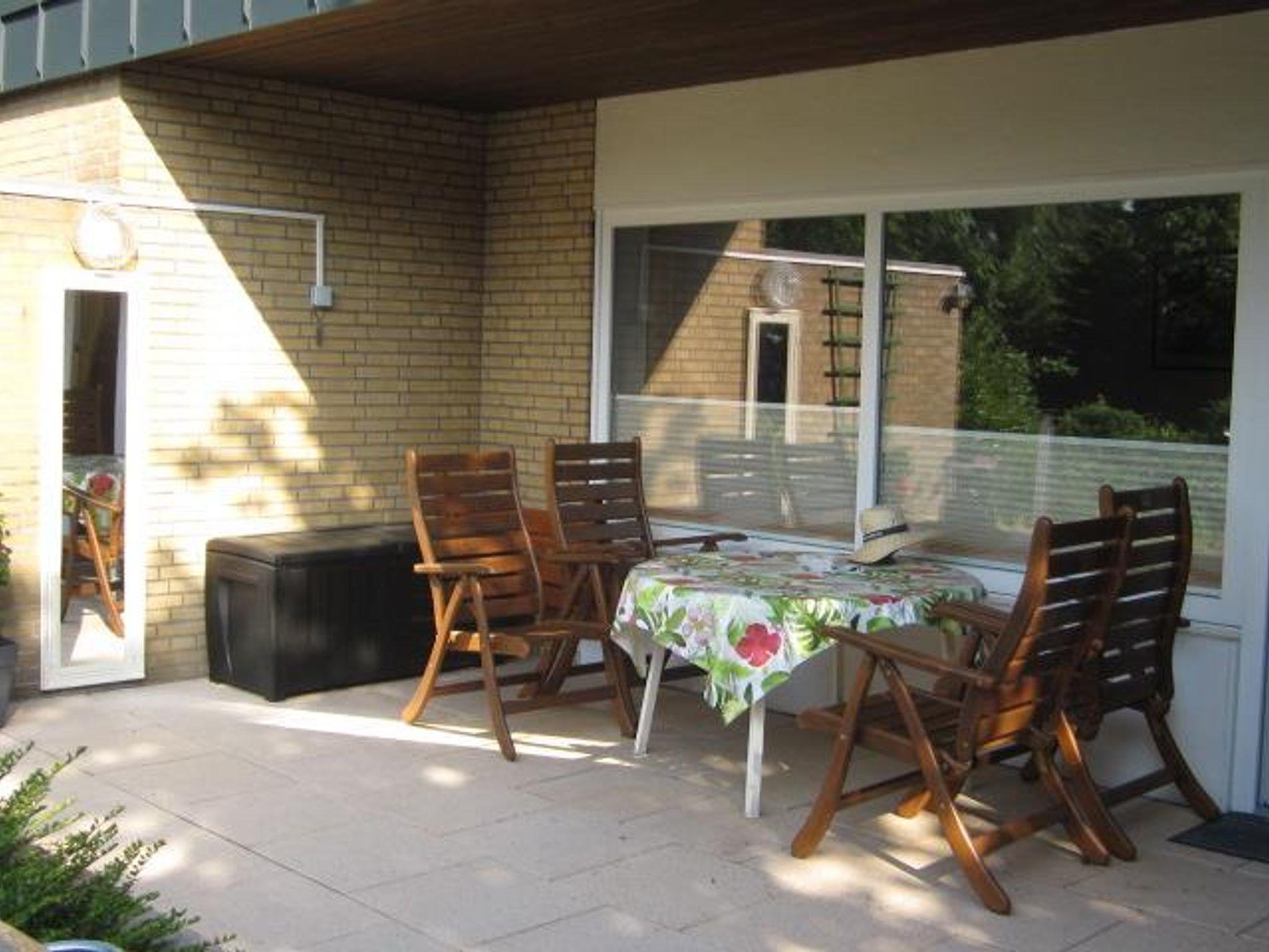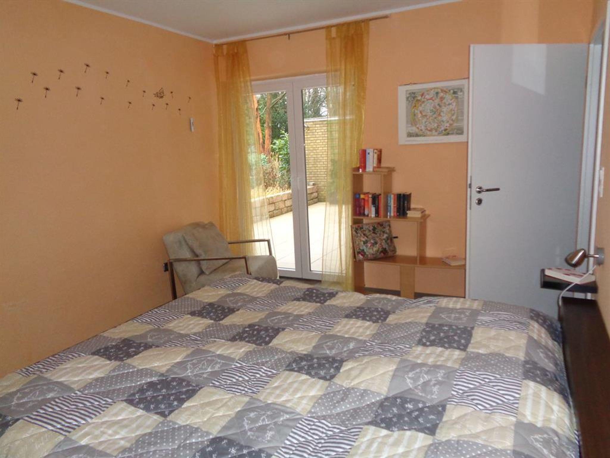 Ruhiges Ferienhaus am Ende einer Sackgasse. Es ist eine helle 120 qm große Wohnung mit 2 Terrassen und einer großen Spiel-, und Liegewiese. Das Haus ist für 5 Personen ausgestattet. Hier für stehen 3 Schlafzimmer, in Form von 2 Doppelzimmern und einem Einzelzimmer bereit. Das Bad verfügt über eine Großraumdusche, 1 WC, und einen Waschtisch mit einem Spiegelschrank und ein seperates Gäste-WC. Dieses Haus ist gut geeignet für 2 Paare, weil die Schlafzimmer durch einen Flur getrennt sind. Auch auch für Familien mit mehreren Kindern ist das Haus wunderbar geeignet. Vor der Küche befindet sich eine Frühstücks-, oder Dämmerschoppenterrasse. Auf der 14 qm großen Sonnenterrasse stehen, Gartenbestuhlung, 2 Sonnenliegen, ein Sonnenschirm und ein Strandkorb zur Verfügung. In der Küche befindet sich eine Essgruppe mit einer Eckbank und 2 Stühlen, Geschirrspühler, Herd (Ceranfeld) mit Backofen, Kühlschrank mit kleinem Gefrierfach.