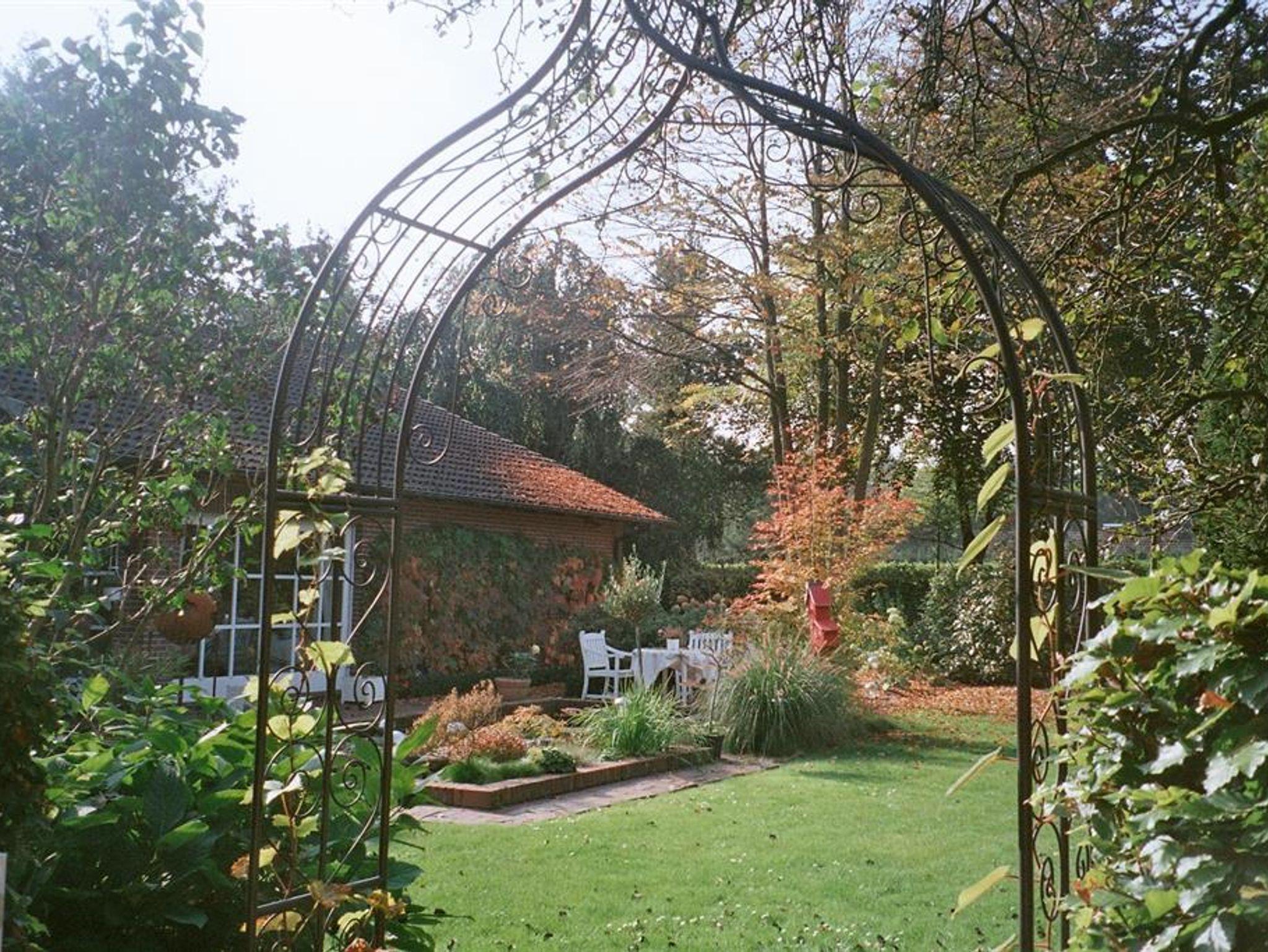 Einfamilienhaus aus Natur-Klinkerstein mit Sprossenfenstern auf 2200 qm großem parkähnlichem Grundstück mit Ferienwohnung. Die Ferienwohnung besteht aus einem Wohn-/Schlafraum mit Kochnische, einem Badezimmer (mit ebenerdiger Dusche), einer Toilette und einem kleinen Flur mit separatem Eingang (Frühjahr 2019 vollkommen renoviert). Sie können eine große Gästeterrasse mit Gartenmöbeln und einem alten Brunnen im Innenhof, direkt vor der Ferienwohnung, zum Entspannen nutzen. Eine weitere Gästeterrasse mit Gartenmöbeln und Liegestühlen befindet sich im gästeeigenen Garten mit Holzhütte (1 Raum) mit Obstbäumen, Buchsbaumhecken und Hainbuchenhecken in sehr ruhiger Lage. Von der Terrasse des Gästegartens können Sie durch einen Rosenbogen auf den bewaldeten Hühnerhof des Nachbarn schauen und bei einer Tasse Tee den Alltag vergessen. Urlaub für die Seele!