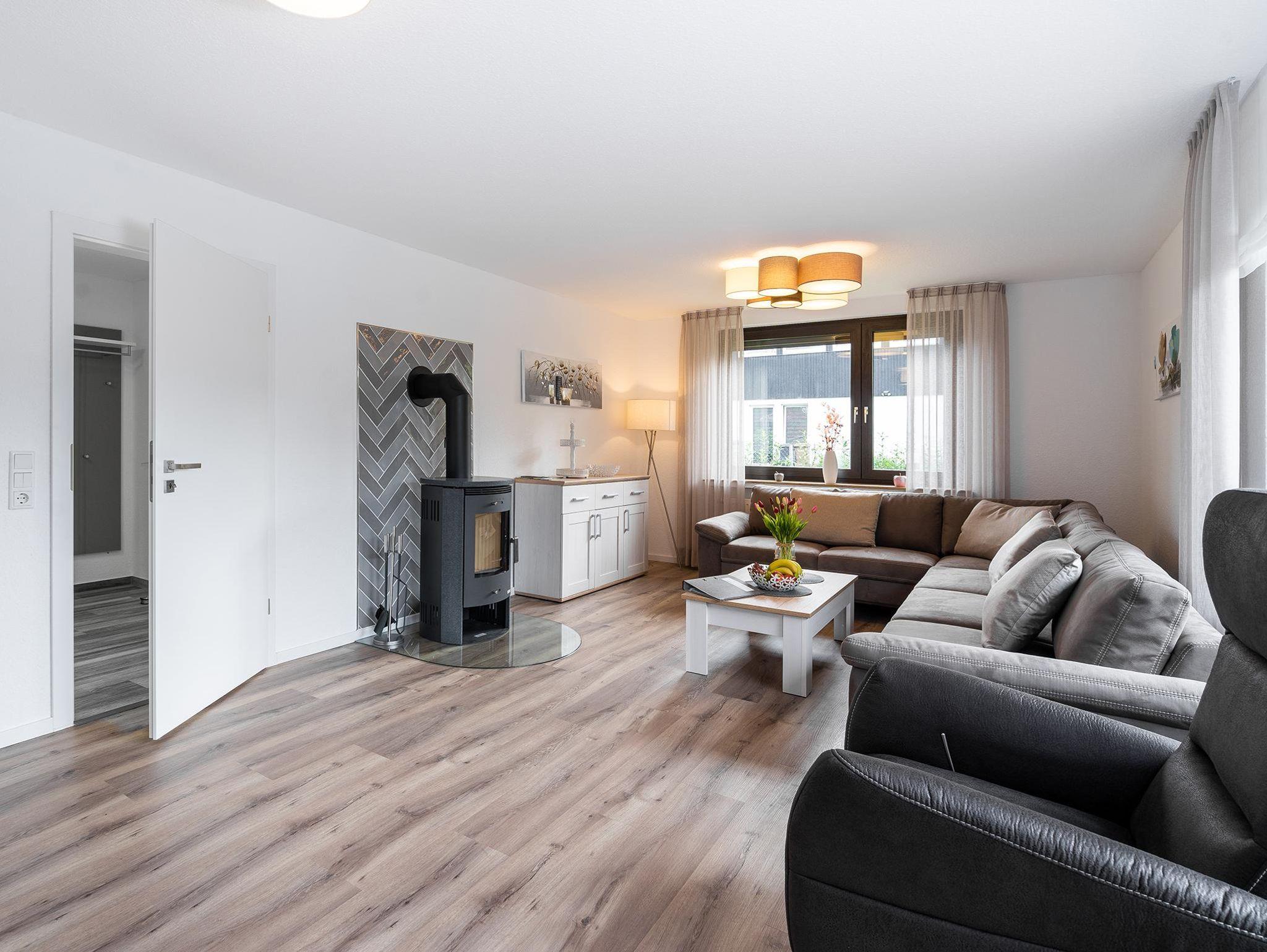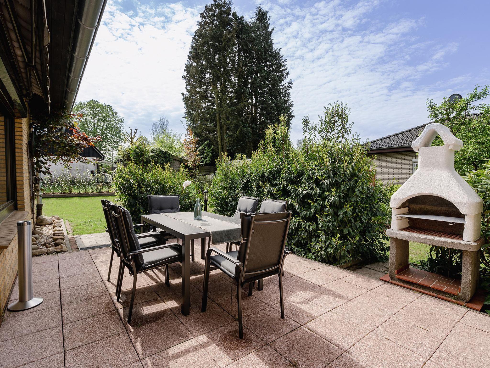 Modernes, familienfreundliches Ferienhaus nahe Bad Zwischenahn mit Terrasse, Kamin und hochwertiger Ausstattung für entspannte Tage am See.