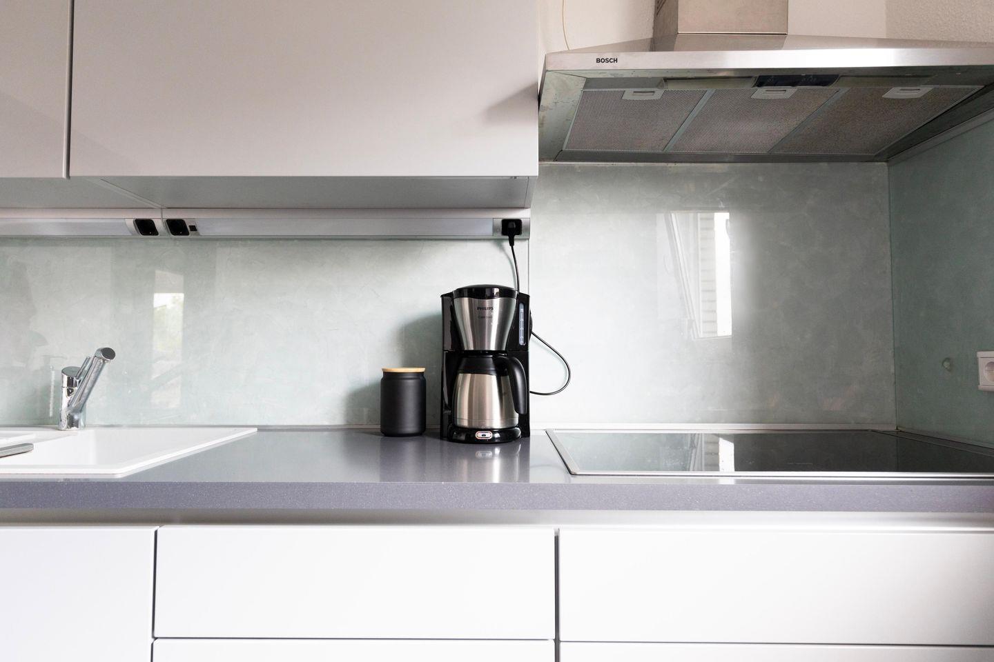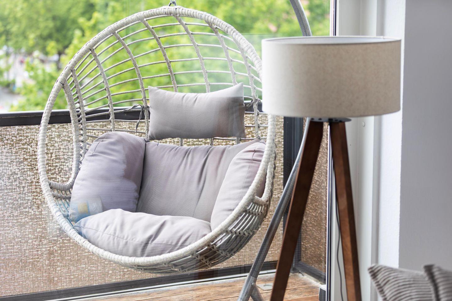 Du kannst deinen Tag mit leckerem Kaffee beginnen und all die schönen Annehmlichkeiten dieses Penthouse genießen, inklusive des sonnigen Balkons mit gemütlichem Hängesessel, einem Grill, und Aussicht auf die Restaurants und Cafés.