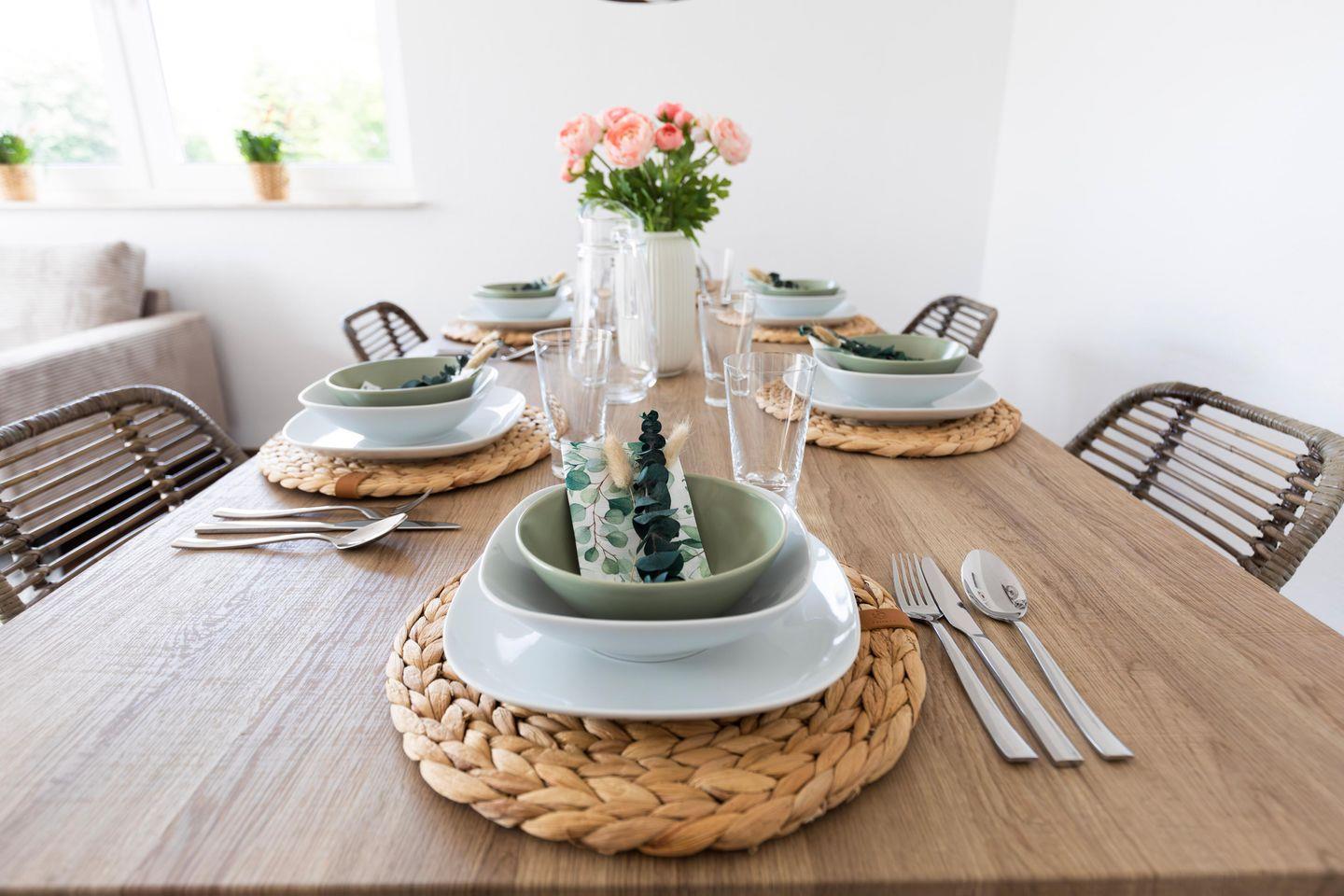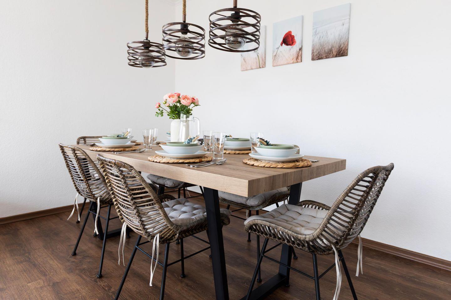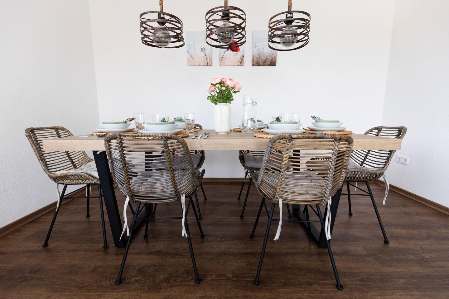 Im Wohnzimmer findest du einen großen Essbereich für 6 Personen sowie einen gemütlichen Sitzbereich mit Sofa und großem Smart-TV. Hier ist sowohl Raum für einen gemütlichen Fernsehabend mit Netflix und Magenta-TV, wie auch die Möglichkeit eines Spieleabends mit deinen Liebsten, dank einer umfassenden Palette an Gesellschaftsspielen.
