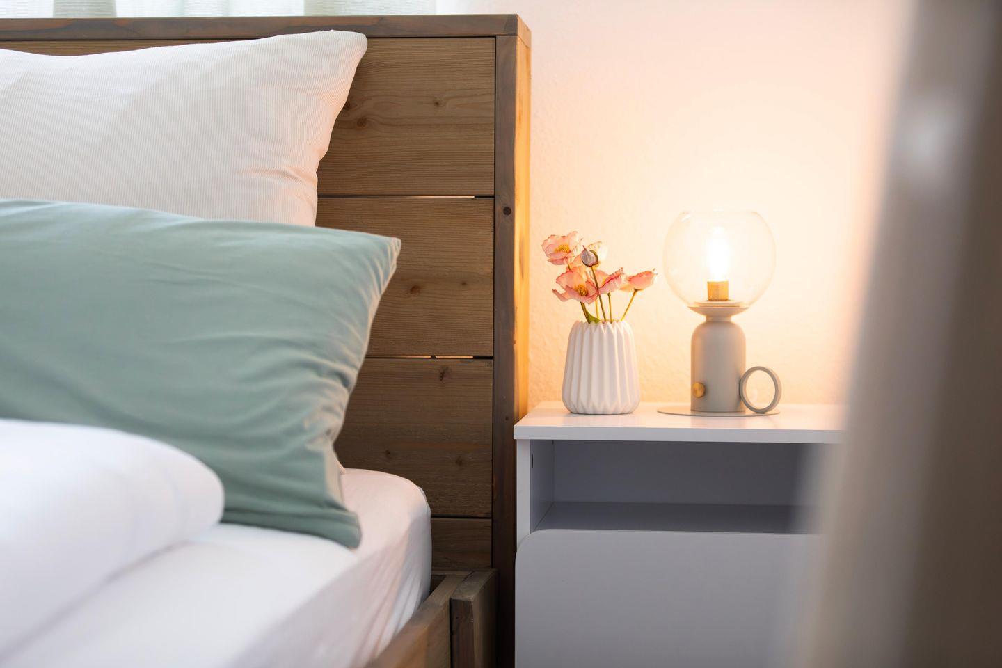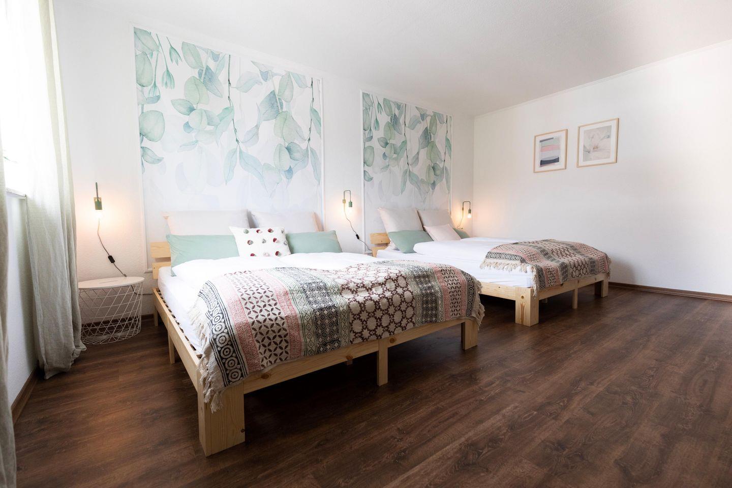 Beide Schlafzimmer verfügen über gemütliche 1,60m Doppelbetten mit hochwertigen Emma Matratzen in die du dich nach einem schönen Tag entspannt fallen lassen kannst.