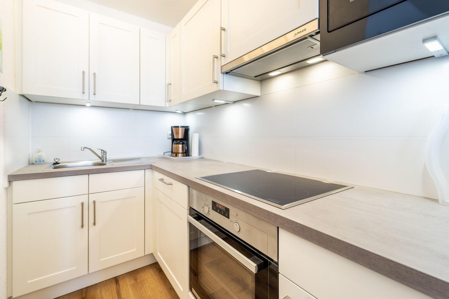 Diese großzügige 2-Zimmer-Wohnung hat alles, was Du für einen unvergesslichen Aufenthalt benötigst. Komm herein und lass Dich von der offenen und modernen Küche im Wohn- und Esszimmer begeistern. Der Blick auf den See vom Esstisch aus schafft eine einladende Atmosphäre, während das gemütliche Sofa zum Entspannen einlädt.