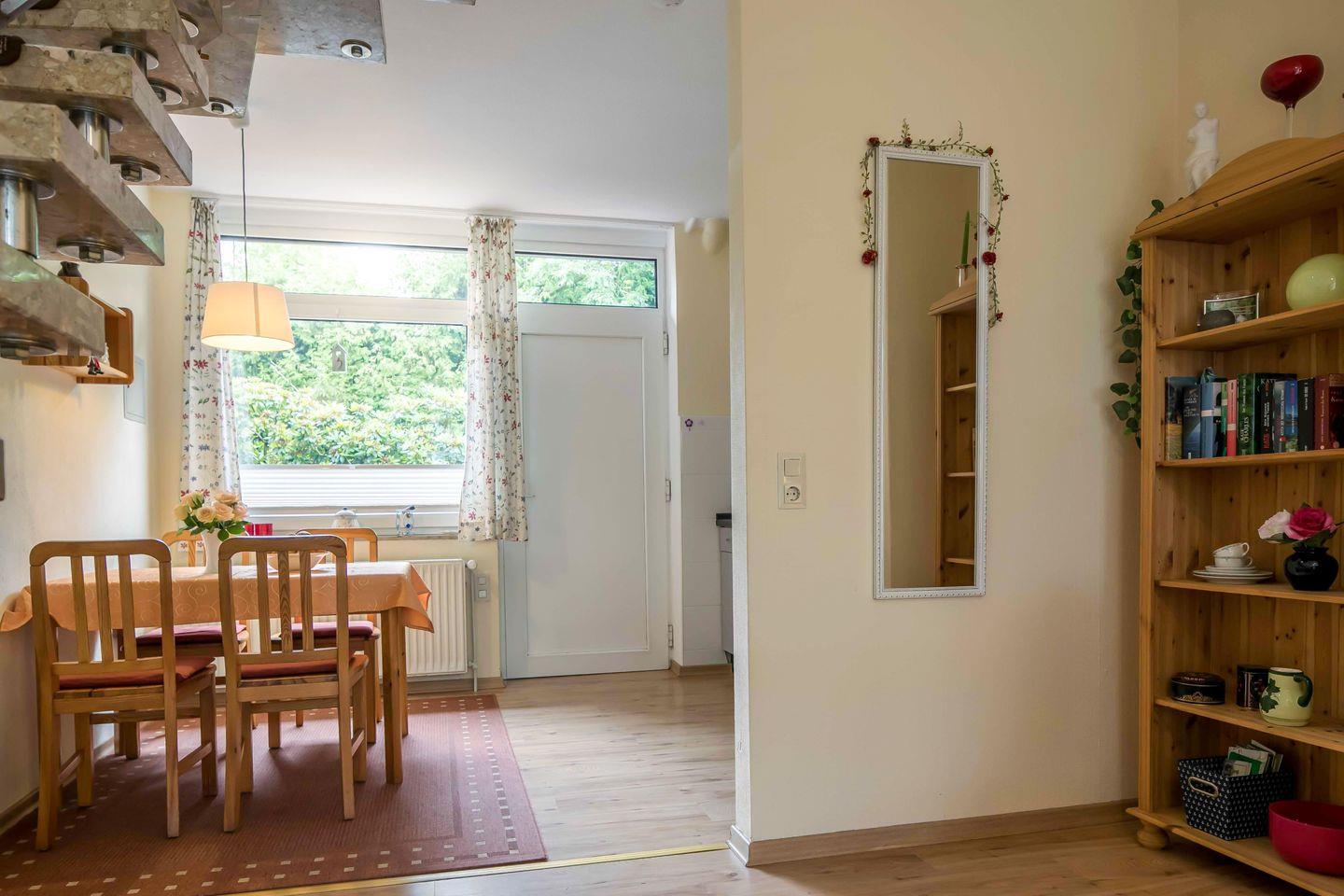 GEEIGNET FÜR MAX. FÜR 2 ERWACHSENE + 2 KINDER | Herzlich willkommen im Ferienhaus "An der Bäke" in Bad Zwischenahn! Jede Wohnung hat ein Wohnzimmer mit offener Küche, ein Schlafzimmer mit Doppelbett, ein Badezimmer und ein charmantes Dachzimmer für Kinder. Mit eigenem Eingang, Terrasse, WLAN und TV ausgestattet, garantieren sie einen angenehmen Aufenthalt. Die gut ausgestatteten Küchen, Fahrradschuppen und zentrale Lage im Ortskern ermöglichen eine flexible und entspannte Erkundung der Umgebung.