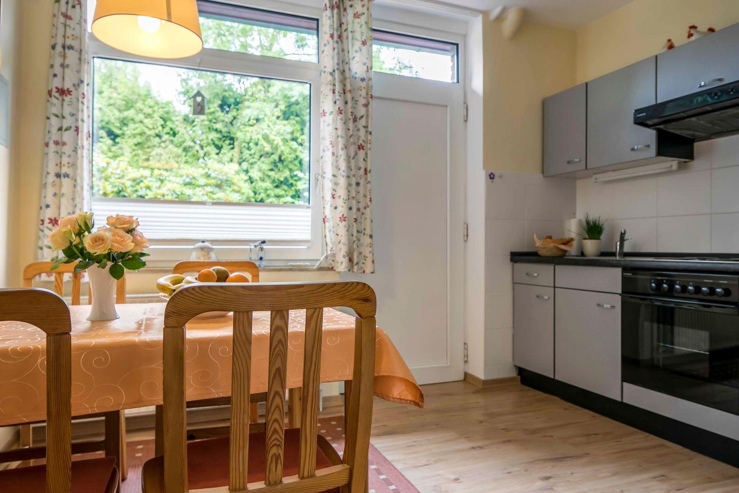 In unseren Ferienwohnungen erwartet Dich eine gemütliche und durchdachte Raumaufteilung. Im Erdgeschoss findest Du ein Wohnzimmer mit offener Küche und einem Esstisch für vier Personen, wo ihr gemeinsam Mahlzeiten genießen könnt. In der ersten Etage befindet sich das Schlafzimmer mit einem komfortablen Doppelbett und dem Badezimmer. Oben unter dem Dach erwartet unsere jüngsten Gäste ein charmantes Zimmer mit zwei Einzelbetten.