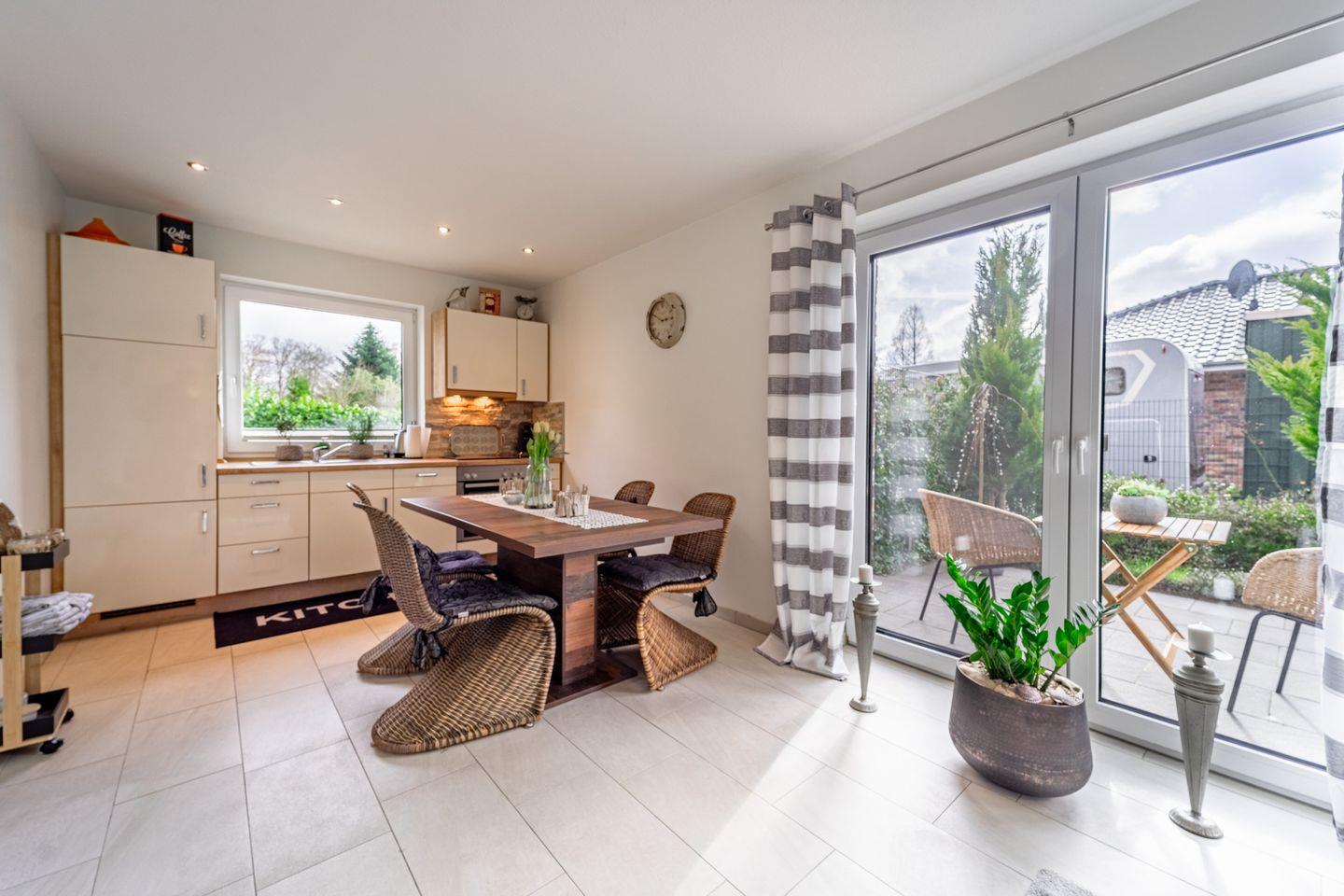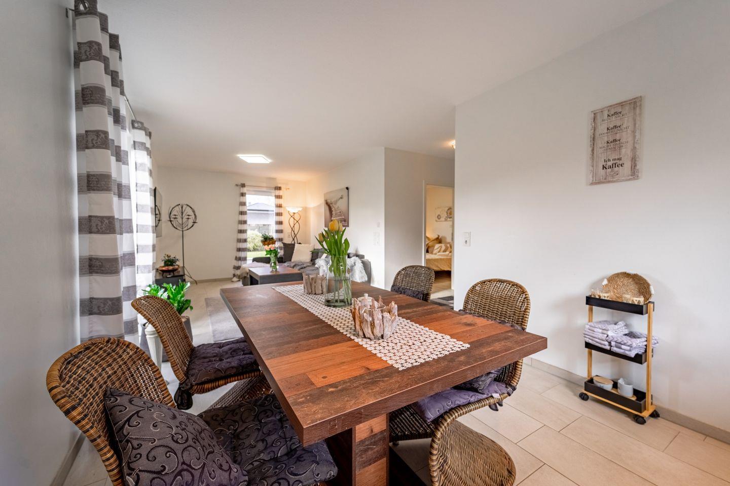 Besonders schön ist der direkte Zugang zur Terrasse mit eigenem kleinen Gartenanteil – ein perfekter Ort für den ersten Kaffee am Morgen oder ein Glas Wein am Abend. Für Fahrräder, Golftaschen oder Kinderwagen gibt’s sichere Abstellmöglichkeiten direkt am Haus.