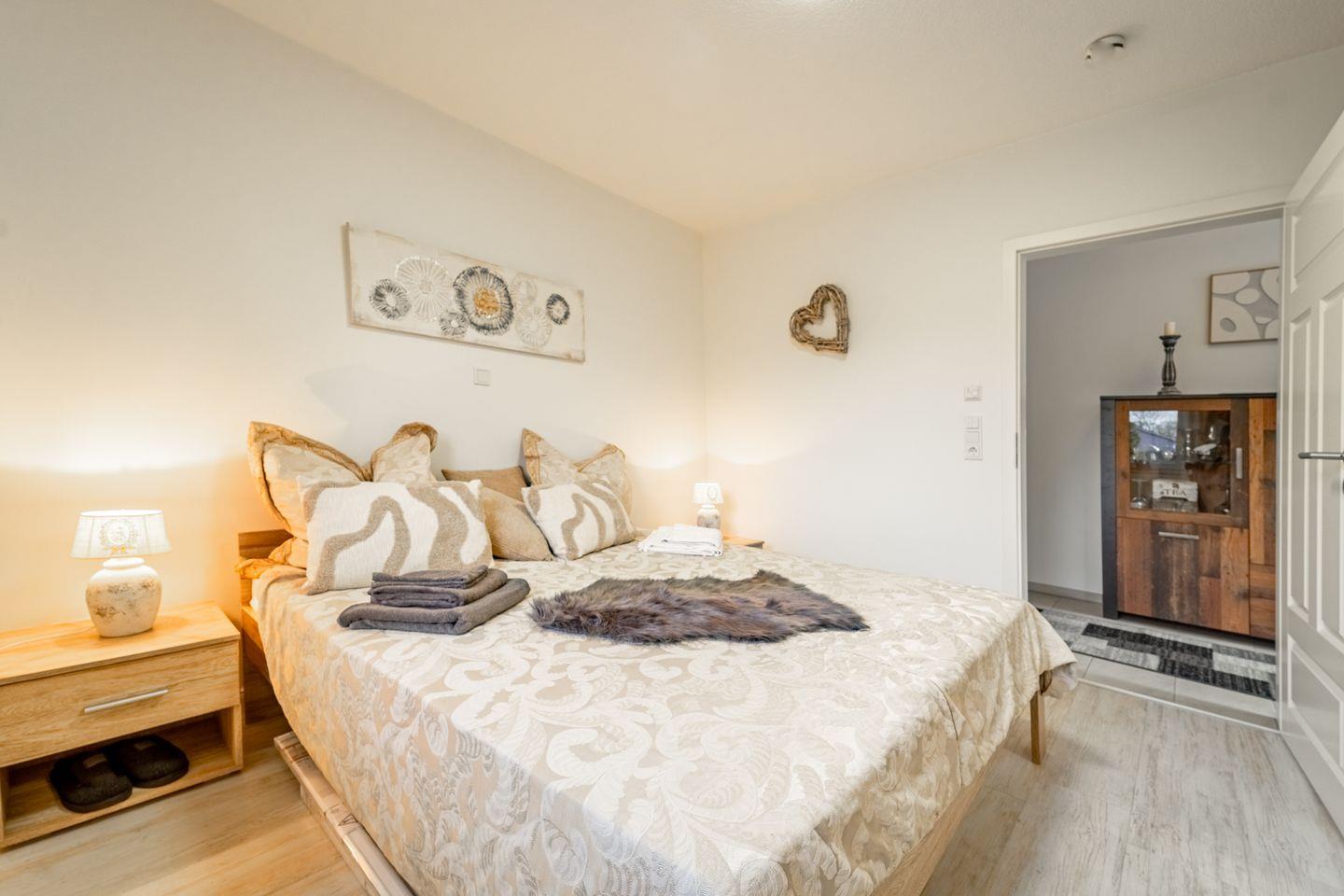 Die barrierefreie Erdgeschosswohnung bietet viel Raum und eine durchdachte Ausstattung. Das große Wohn- und Esszimmer mit offener Küche ist hell, freundlich und lädt sofort zum Ankommen ein. Im Schlafzimmer wartet ein bequemes Bett, und wer noch zu dritt oder viert reist, kann es sich auf der ausziehbaren Couch im Wohnzimmer gemütlich machen.