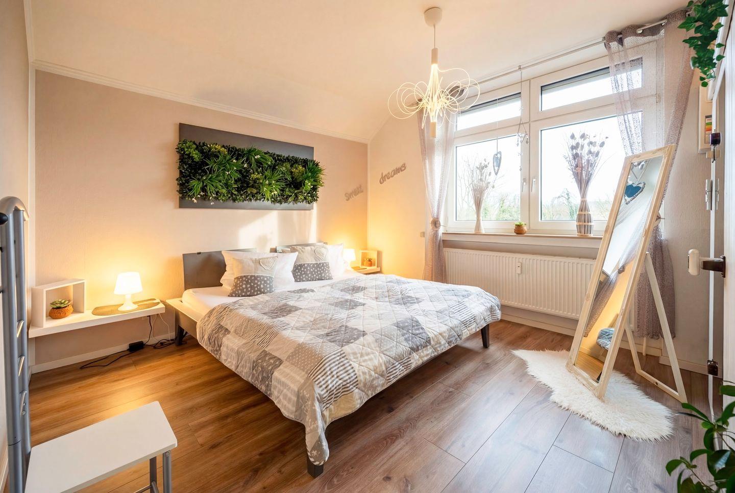 Die HELLO HOLIDAYS “Ammerblick Suite” ist ein heller Rückzugsort unter dem Giebeldach, ideal für Paare, die Ruhe, Komfort und ein besonderes Wohngefühl suchen. Auf rund 60 Quadratmetern verbinden sich warme Materialien, hohe Decken und viel Tageslicht zu einer entspannten Atmosphäre. Die Lage am Ortseingang von Bad Zwischenahn ermöglicht es, Geschäfte, Cafés und das Zwischenahner Meer in wenigen Minuten zu Fuß zu erreichen.