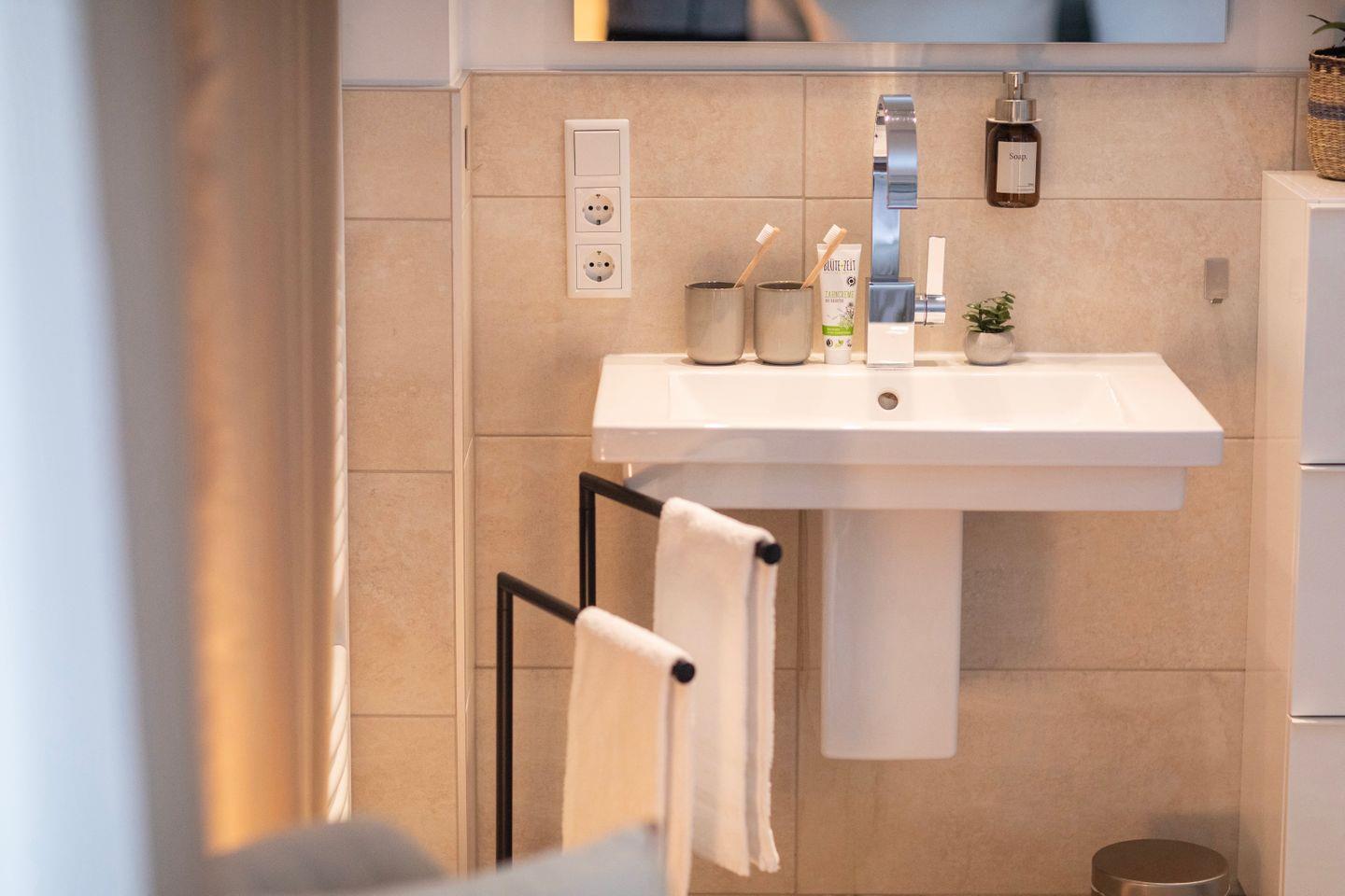 Natürlich stellen wir frische Handtücher und alle wichtigen Dinge wie Duschgel & Shampoo zur Verfügung.