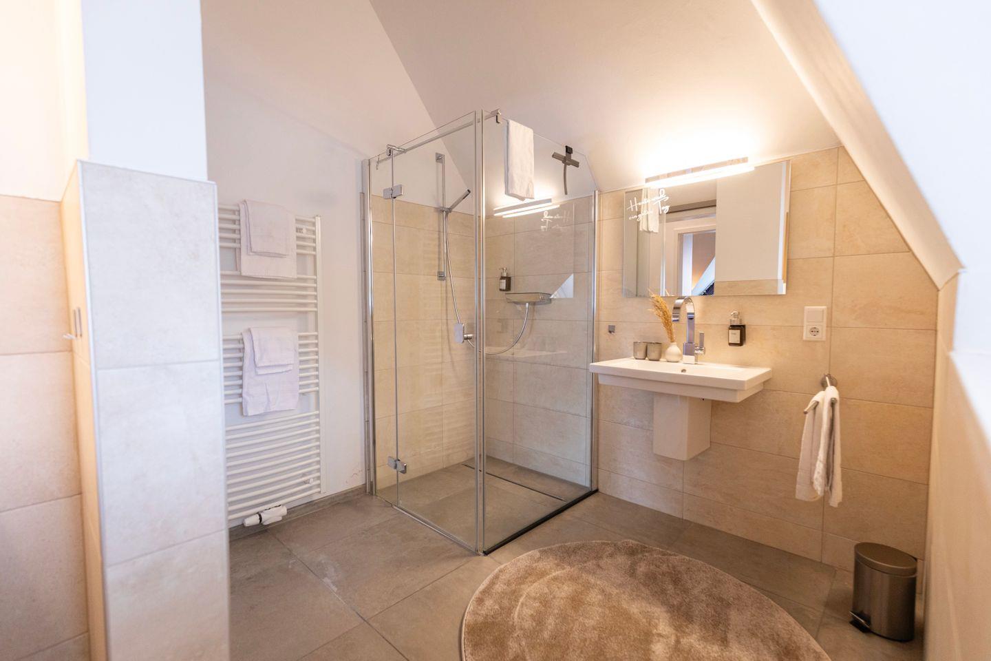 Natürlich stellen wir frische Handtücher und alle wichtigen Dinge wie Duschgel & Shampoo bereit.
