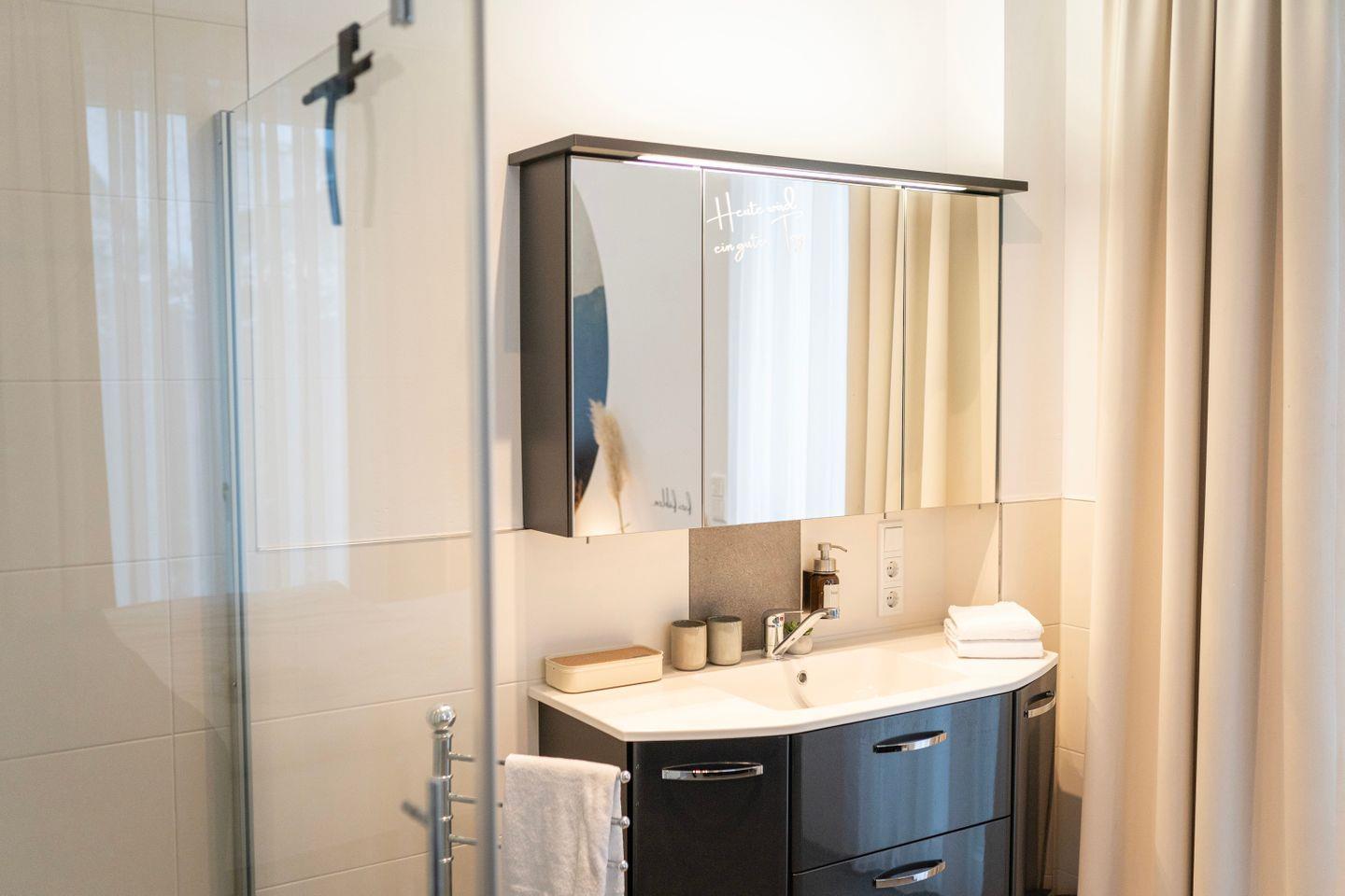 Natürlich stellen wir frische Handtücher und alle wichtigen Dinge wie Duschgel & Shampoo bereit.