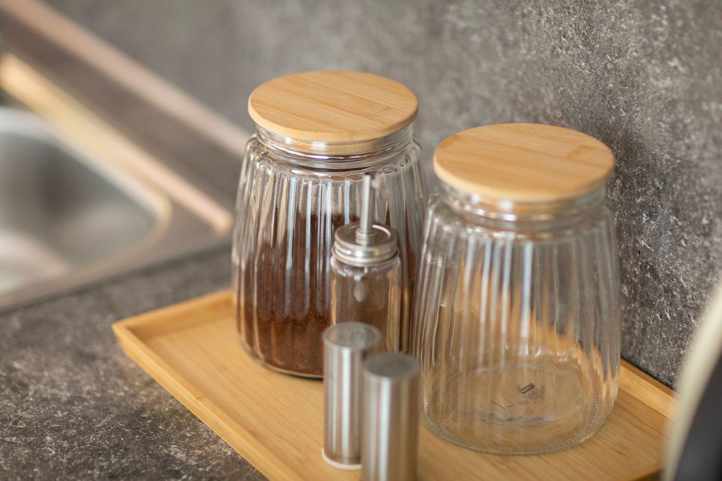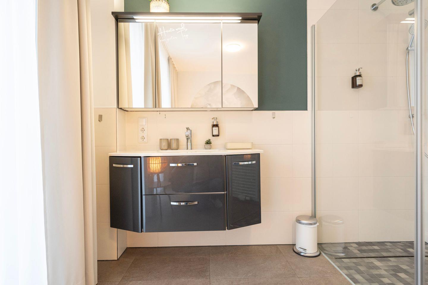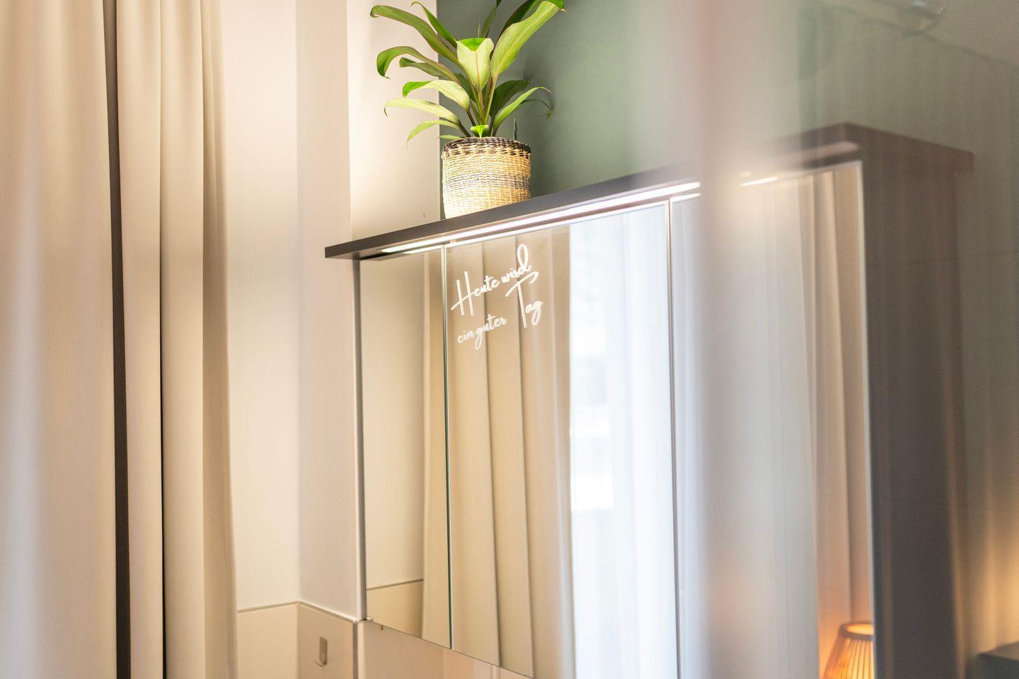 Die Küche ist natürlich voll ausgestattet mit Herd, Kühlschrank, Backofen, Spülmaschine, Mikrowelle und allem was Du sonst brauchst um lecker zu kochen. Das Apartment verfügt ebenso über eine Waschmaschine.