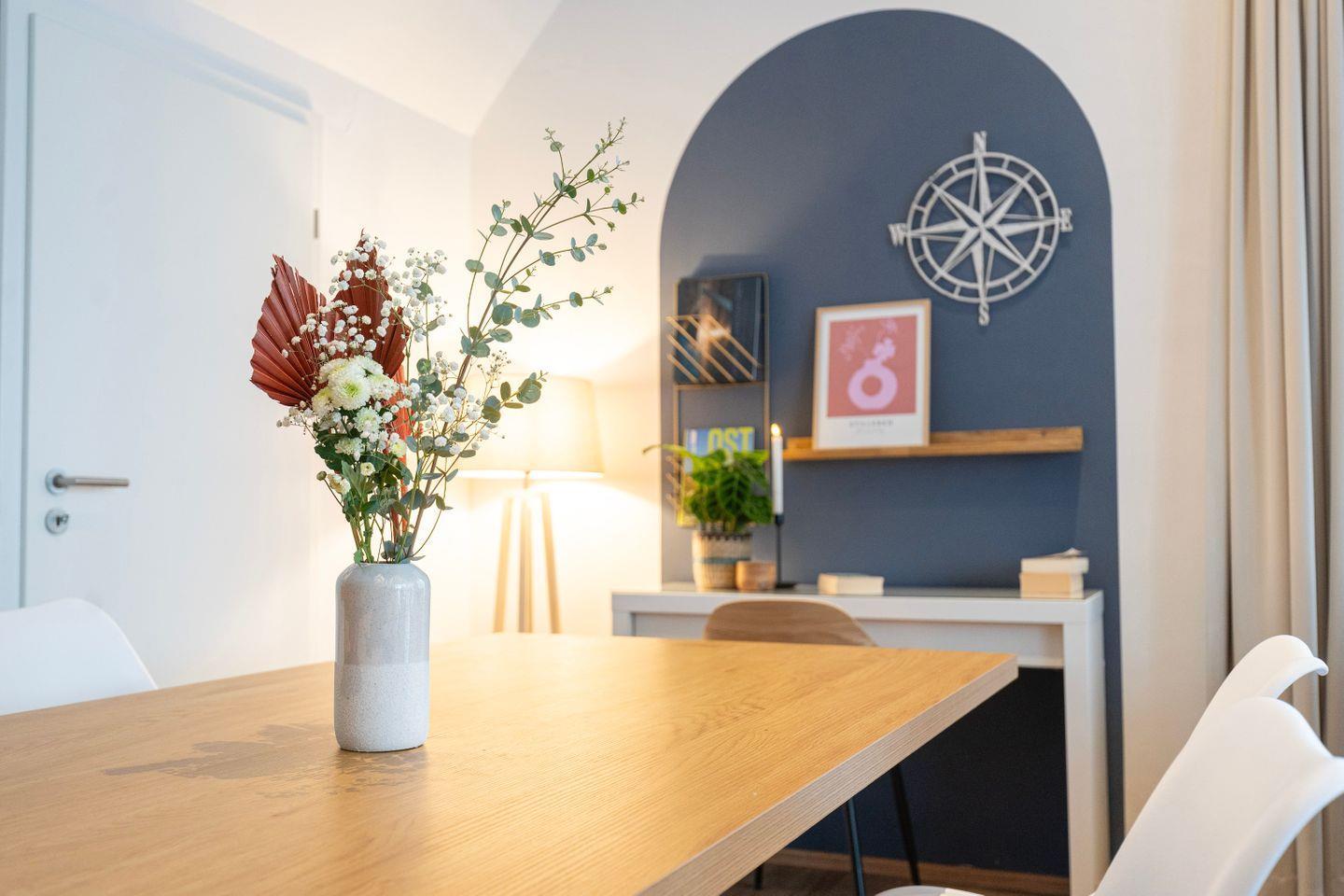 Beginne Deinen Tag mit leckerem Kaffee und genieße all die Annehmlichkeiten dieses Apartments, einschließlich der großen Terrasse mit exklusivem Seeblick, großzügigen Sitzbereichen für 6 Personen, einem Grill und Zugang zur Sauna auf der Anlage. Die Wohnung ist inspiriert vom Element Luft, was sich in einem ruhigen und erfrischenden Interior-Design widerspiegelt.