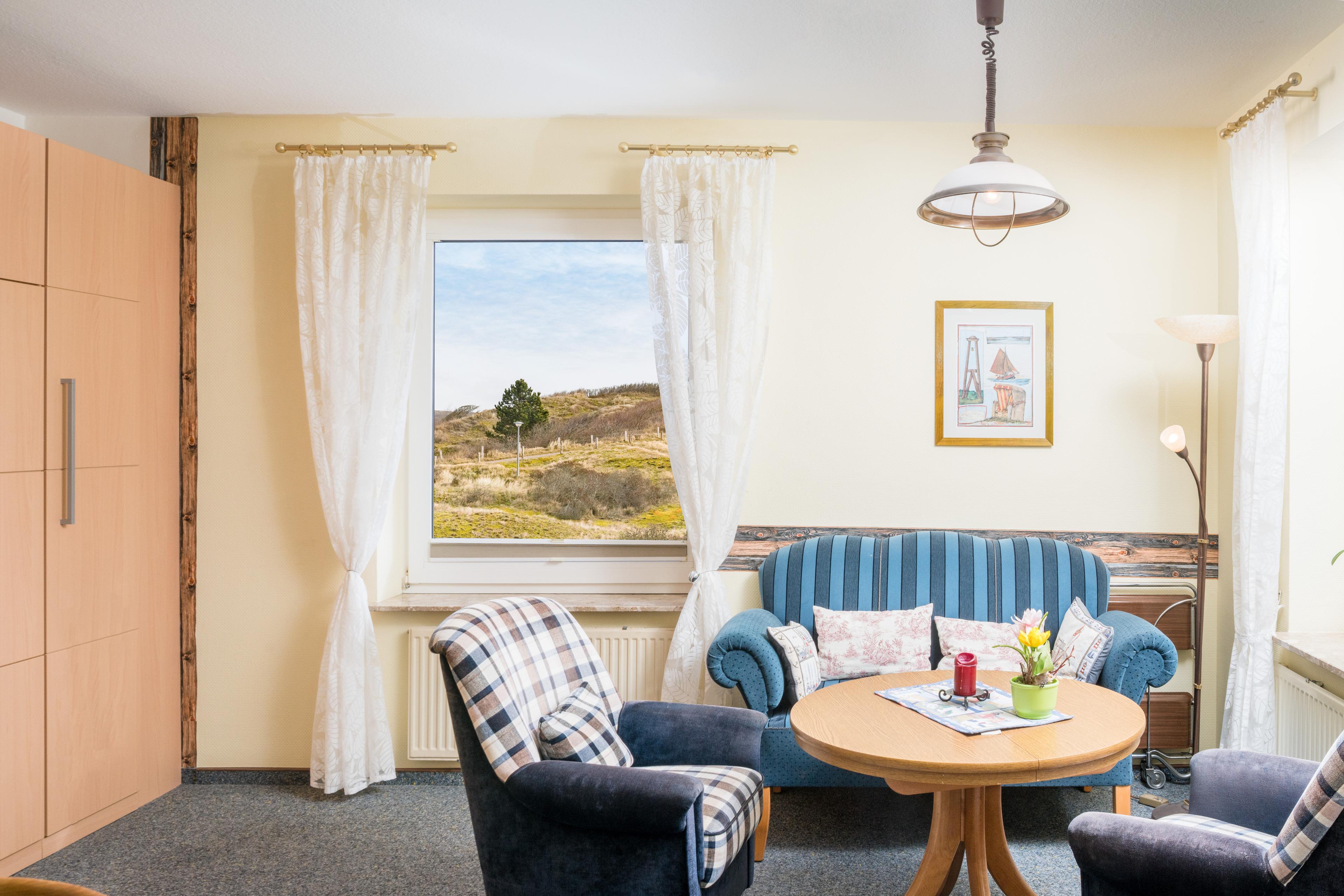 Gemütliche Ferienwohnung mit Süd-Balkon und Dünenblick in Baltrum für erholsame Urlaubstage.