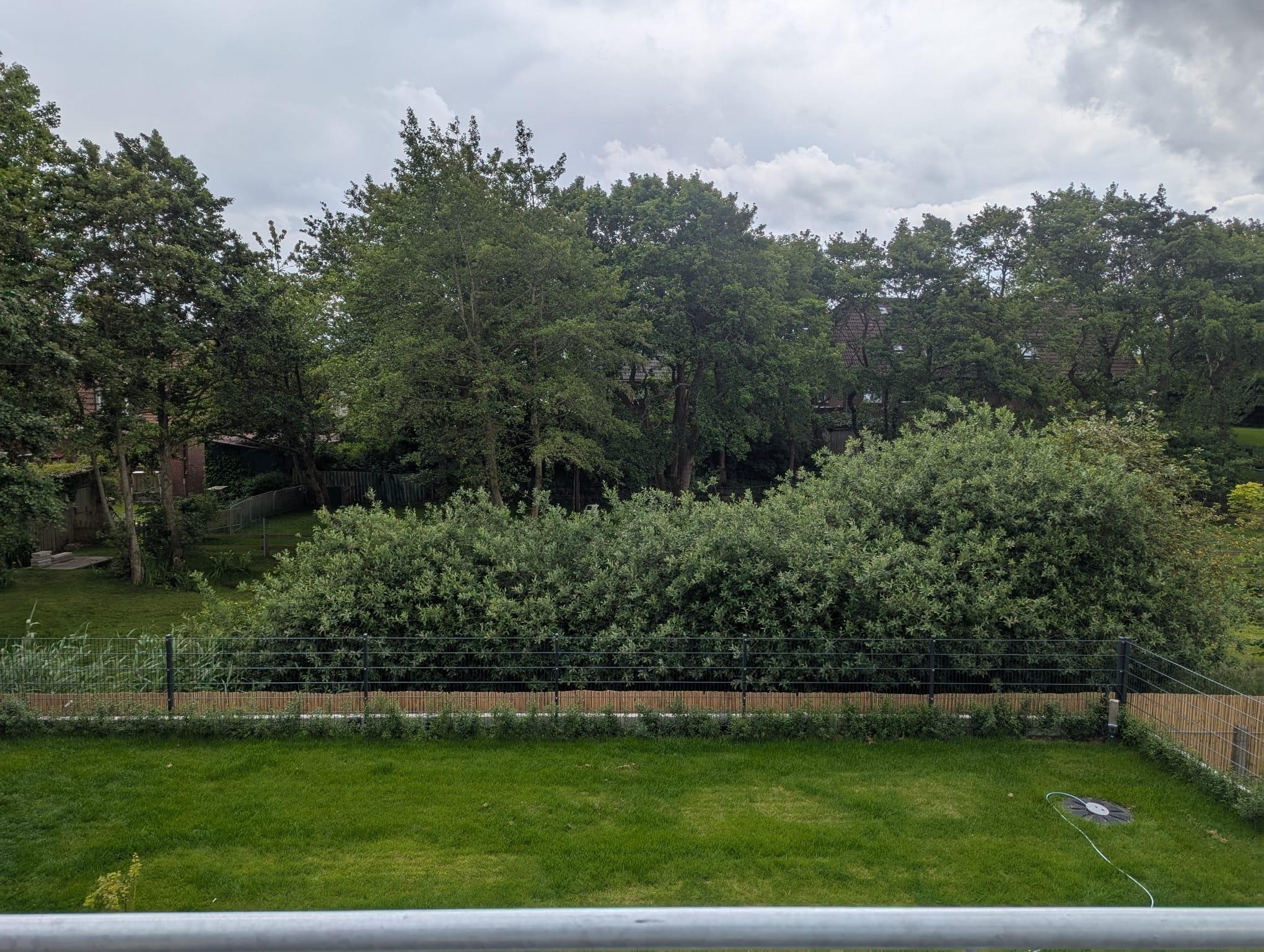 Modernes, barrierearmes Ferienhaus Njord auf Baltrum mit Süd-Balkon, ruhiger Lage und Blick ins Grüne.