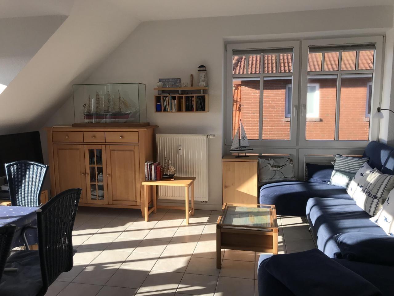 Komfortable Maisonette-Ferienwohnung in Baltrum mit Meerblick, Balkon und moderner Ausstattung für entspannte Strandtage.