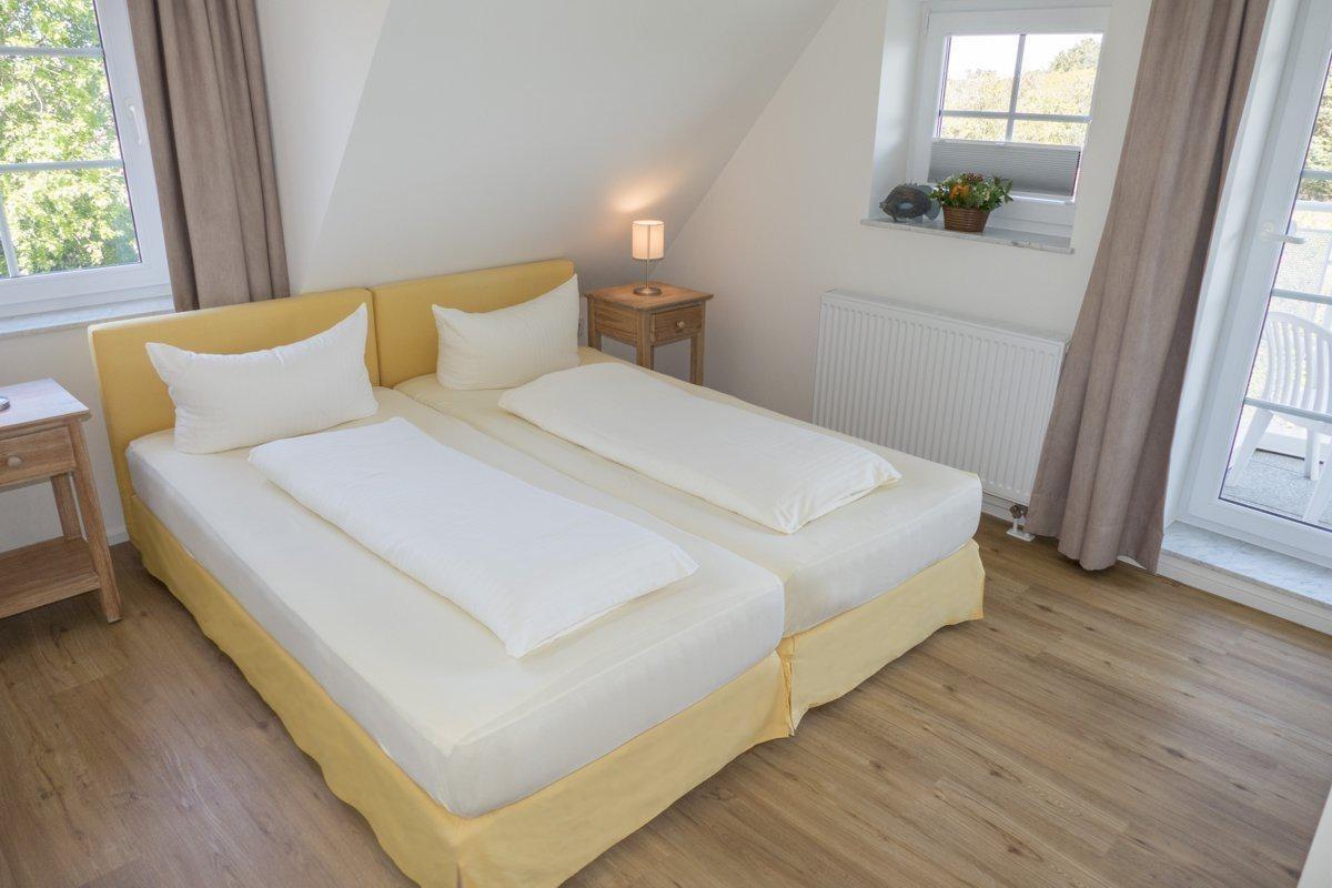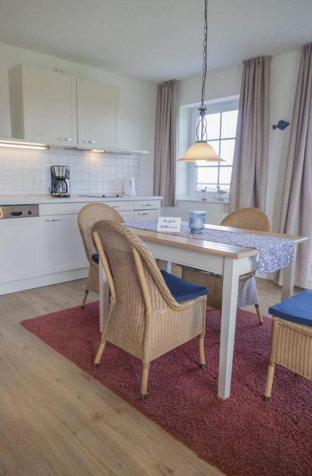 Wir haben die Wohnungen für Sie individuell, hell und freundlich im Landhausstil eingerichtet. Sie verfügen über separate Schlafzimmer und Wohn-Schlafräume. Zur Ausstattung gehören eine komplette Küchenzeile mit Spülmaschine und Mikrowelle, Sat-TV, WLAN, Dusche/WC, Terrasse oder Balkon mit Blick auf Dünen und Wattenmeer. Weiterhin befinden sich Waschmaschine und ein Trockner mit Münzautomat im Haus.