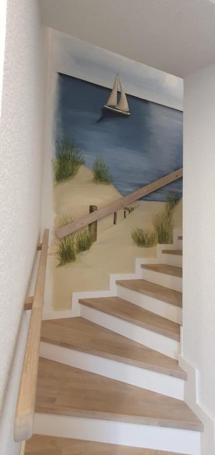 Unsere moderne Ferienwohnung (Doppelhaushälfte) liegt mitten im Westdorf, zentral gelegen, dennoch ruhig in zweiter Reihe, ca. zwei Gehminuten vom Strand entfernt.