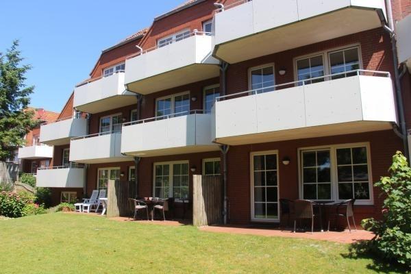 Gemütliche Ferienwohnung in Baltrum mit Terrasse und Gartenblick, ideal für 2 Erwachsene und 1 Kind.